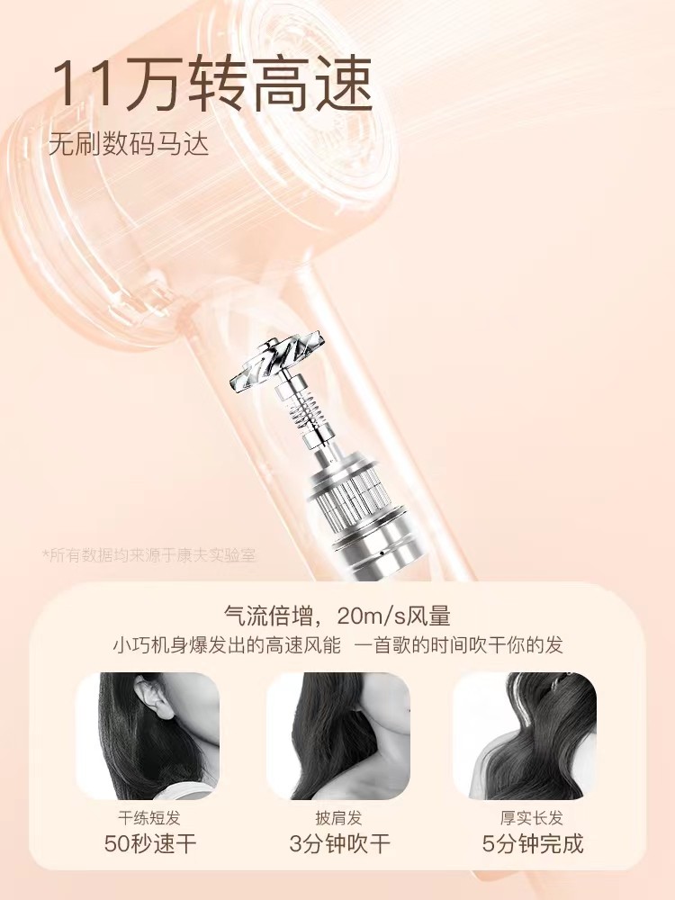 康夫吹风机家用F2高速吹风机负离子护发速干电吹风筒大功率大风力