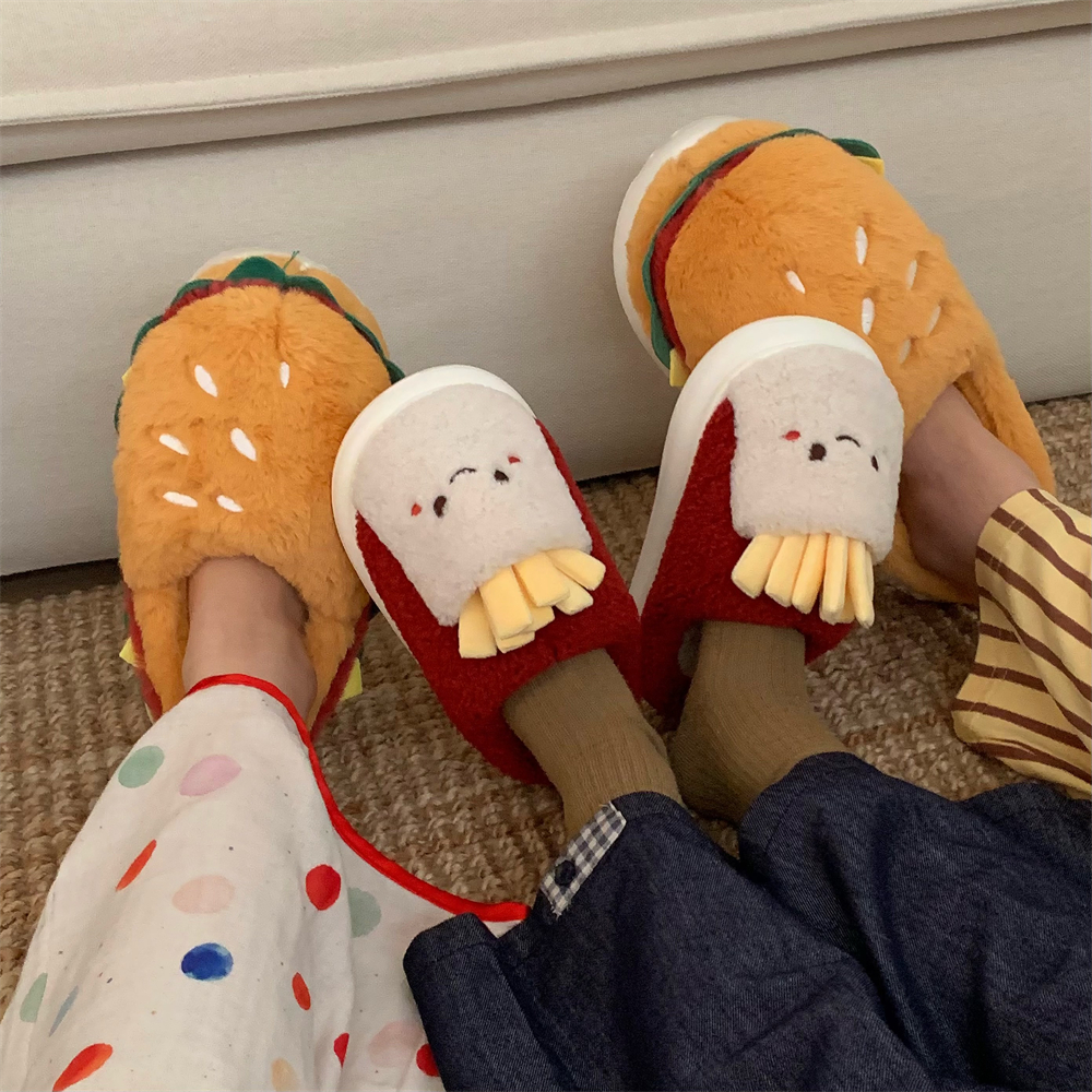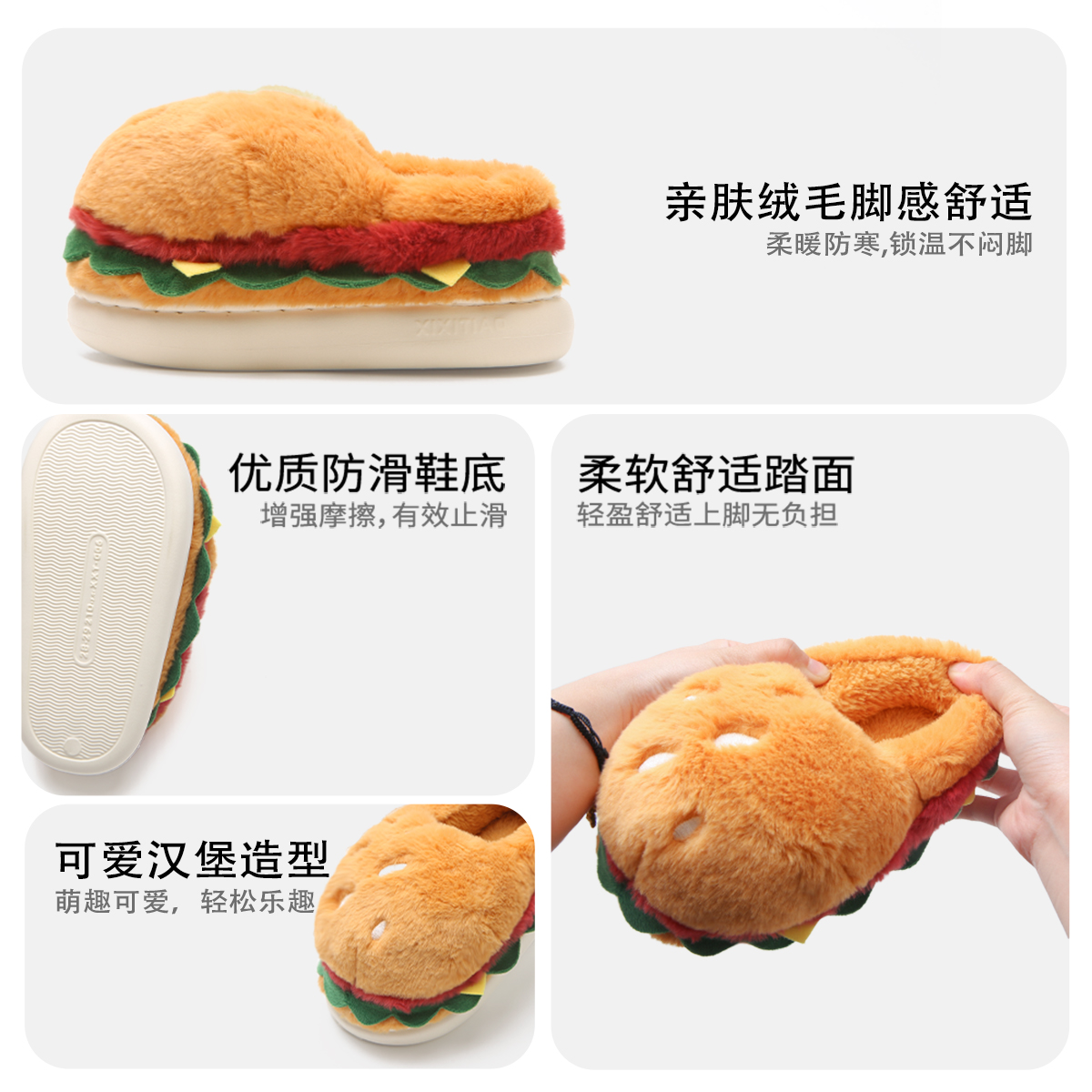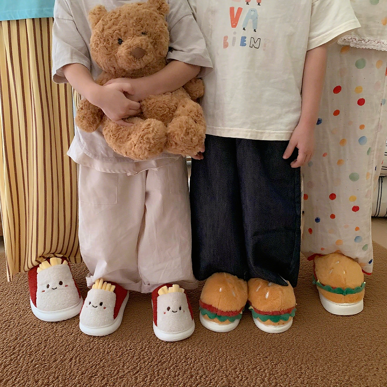 细细条 ins可爱汉堡薯条儿童棉拖鞋冬保暖亲子一家三口居家鞋男女