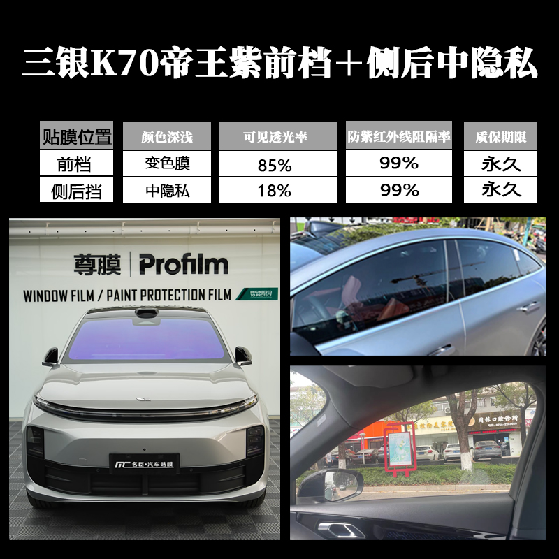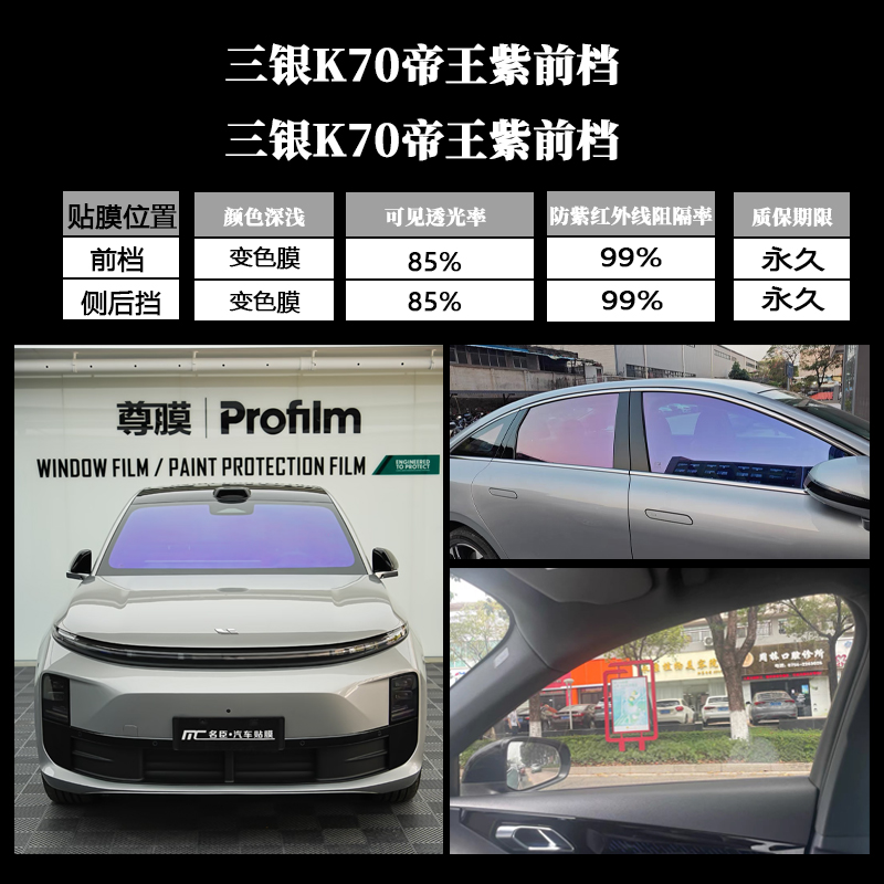 正品三银金属帝王紫K70汽车玻璃膜太阳膜前挡防晒遮阳高清隔热膜