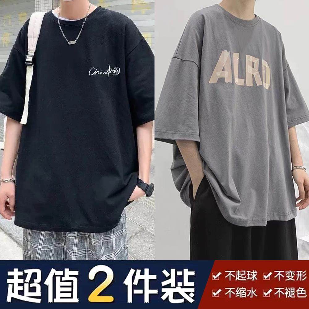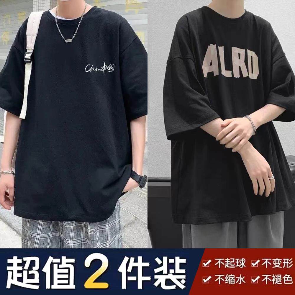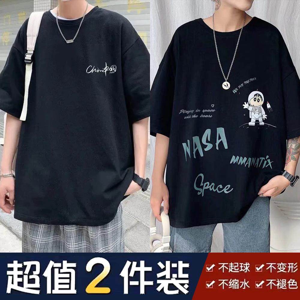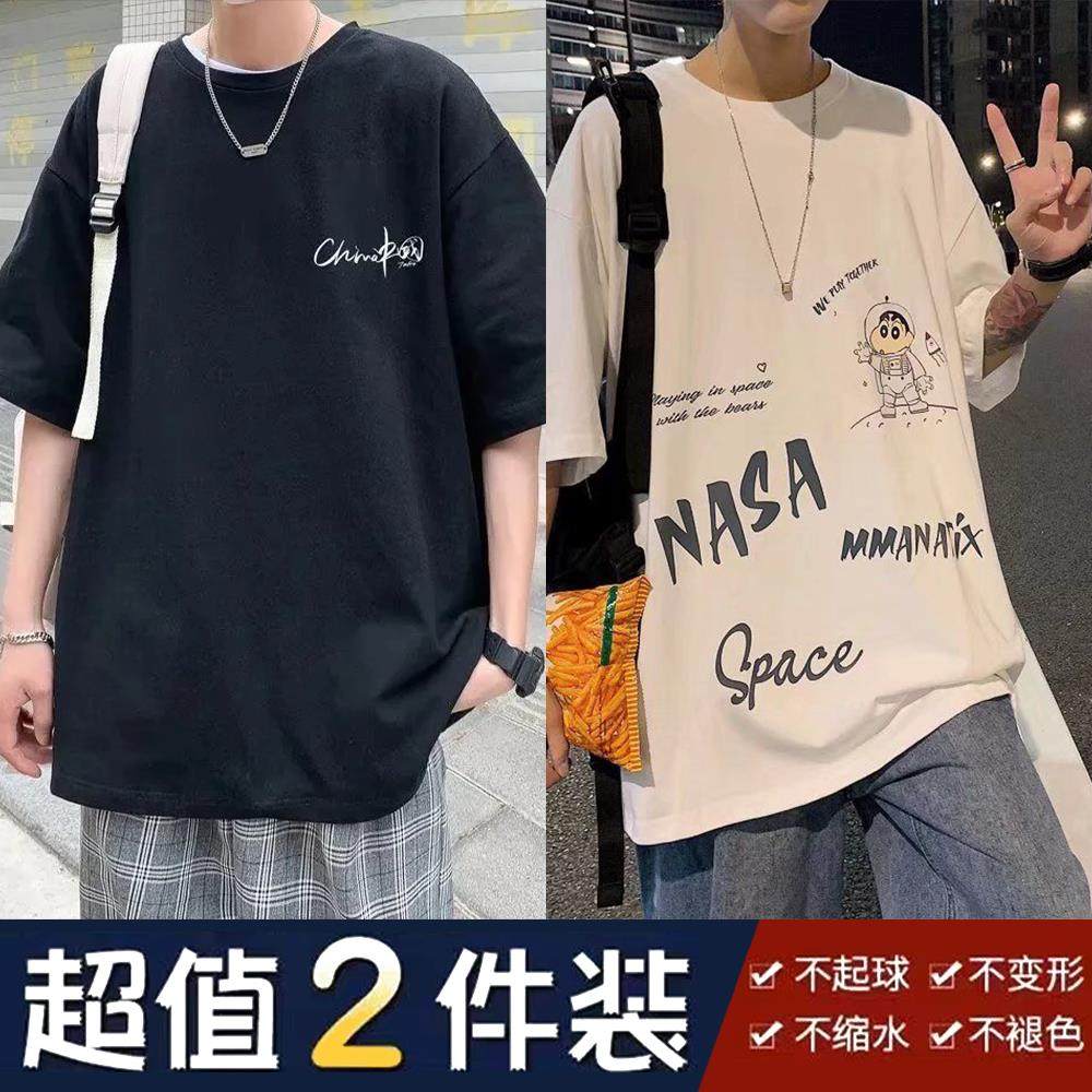 夏季潮流短袖男士宽松上衣ins百搭青少年T恤衫五分袖港风半袖新款