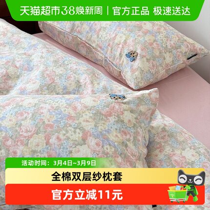 Teenie Weenie小熊A类碎花全棉纯棉双层纱布枕套48x74cm枕芯内胆