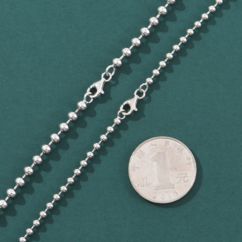 圆珠链925银链链子纯银项链女锁骨链男珠链银珠子毛衣链裸链百搭