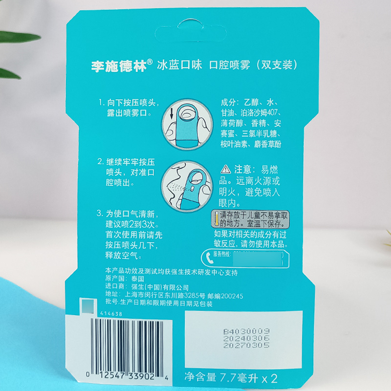 李施德林冰蓝口腔喷雾口气清新剂口喷清洁口臭味男士女生接吻亲嘴