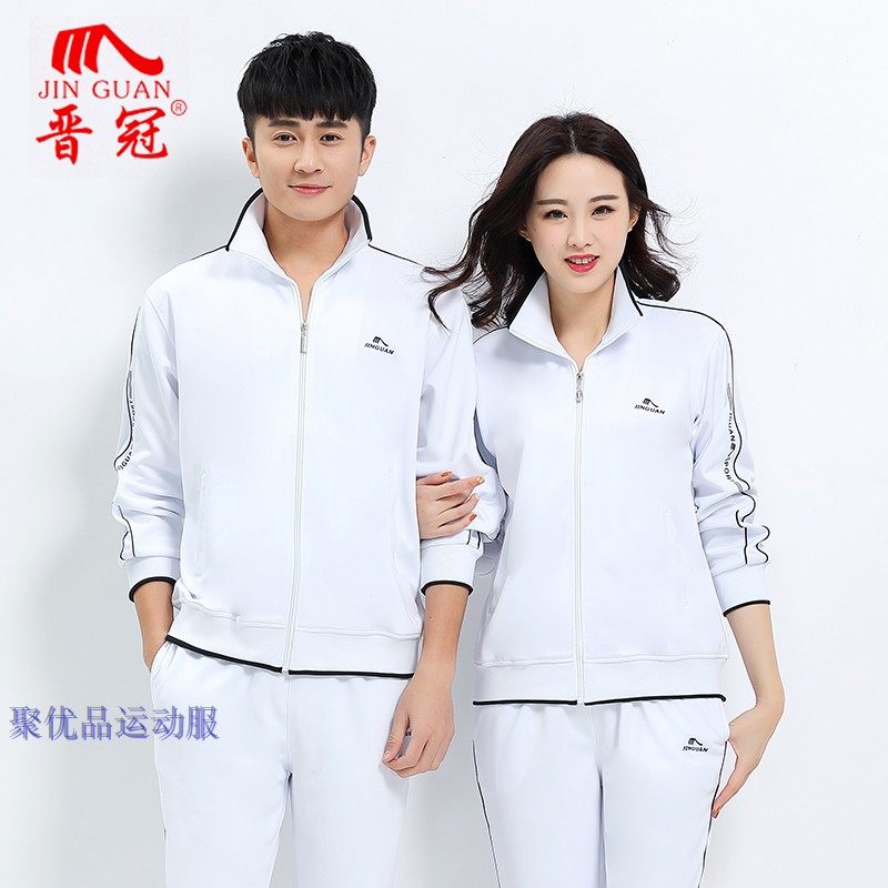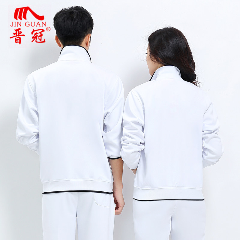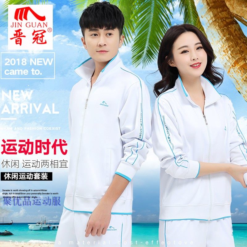 晋冠佳木斯春秋白色运动服女情侣运动套装长袖女时尚白色运动装男