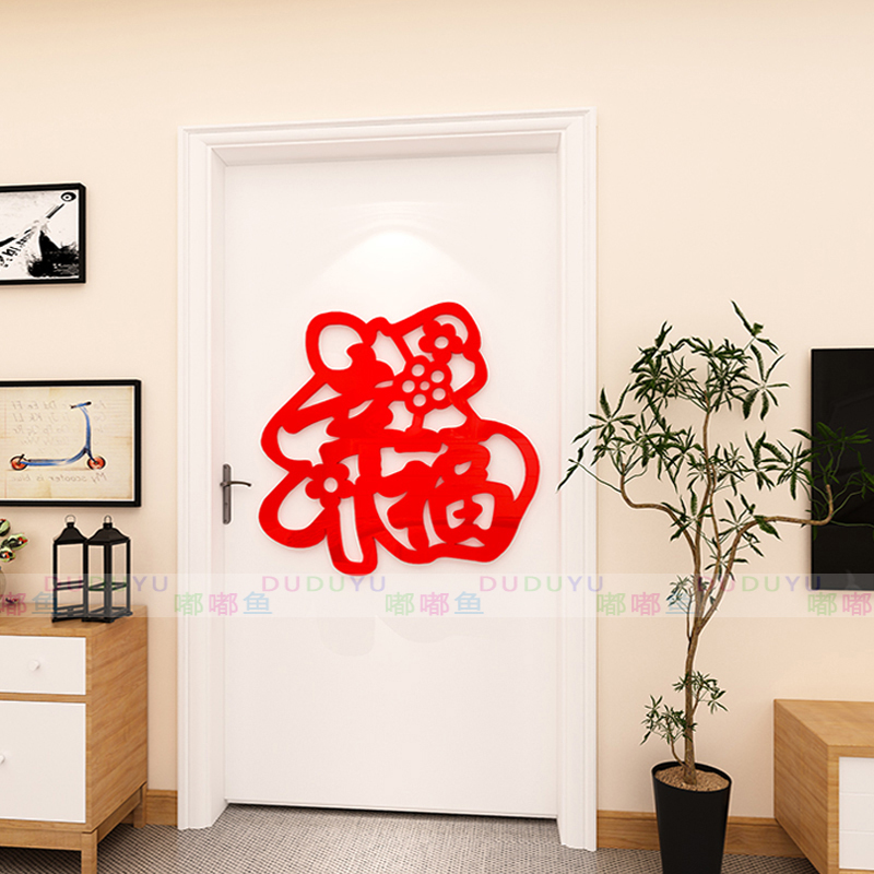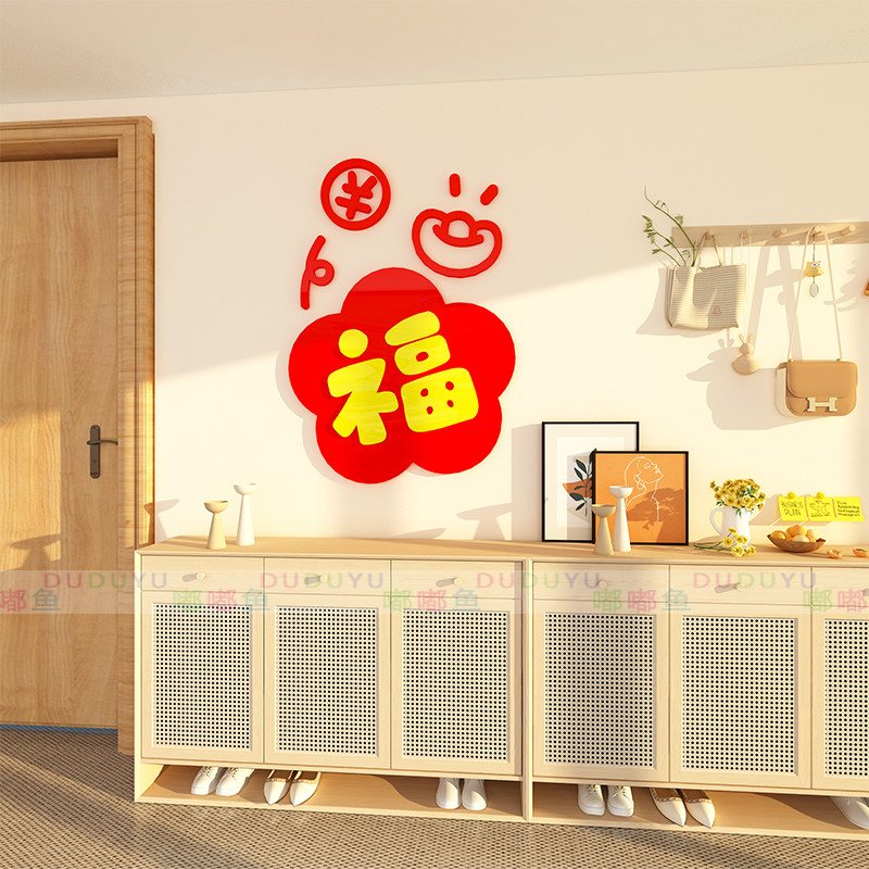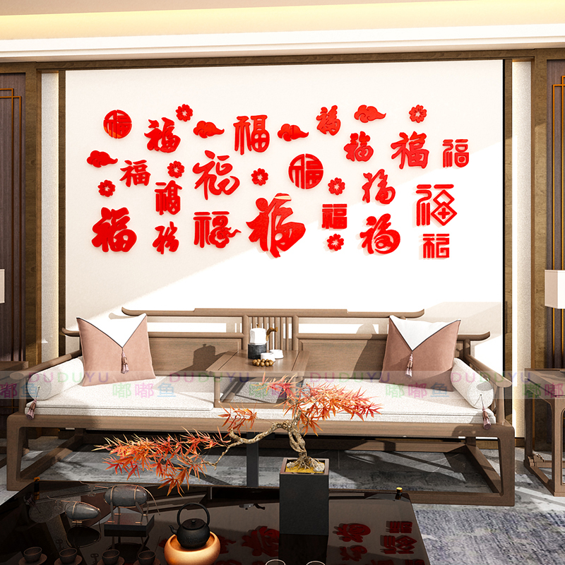 龙年春节福字装饰品电视背景墙面E自粘迎门贴纸画卧室布置客厅