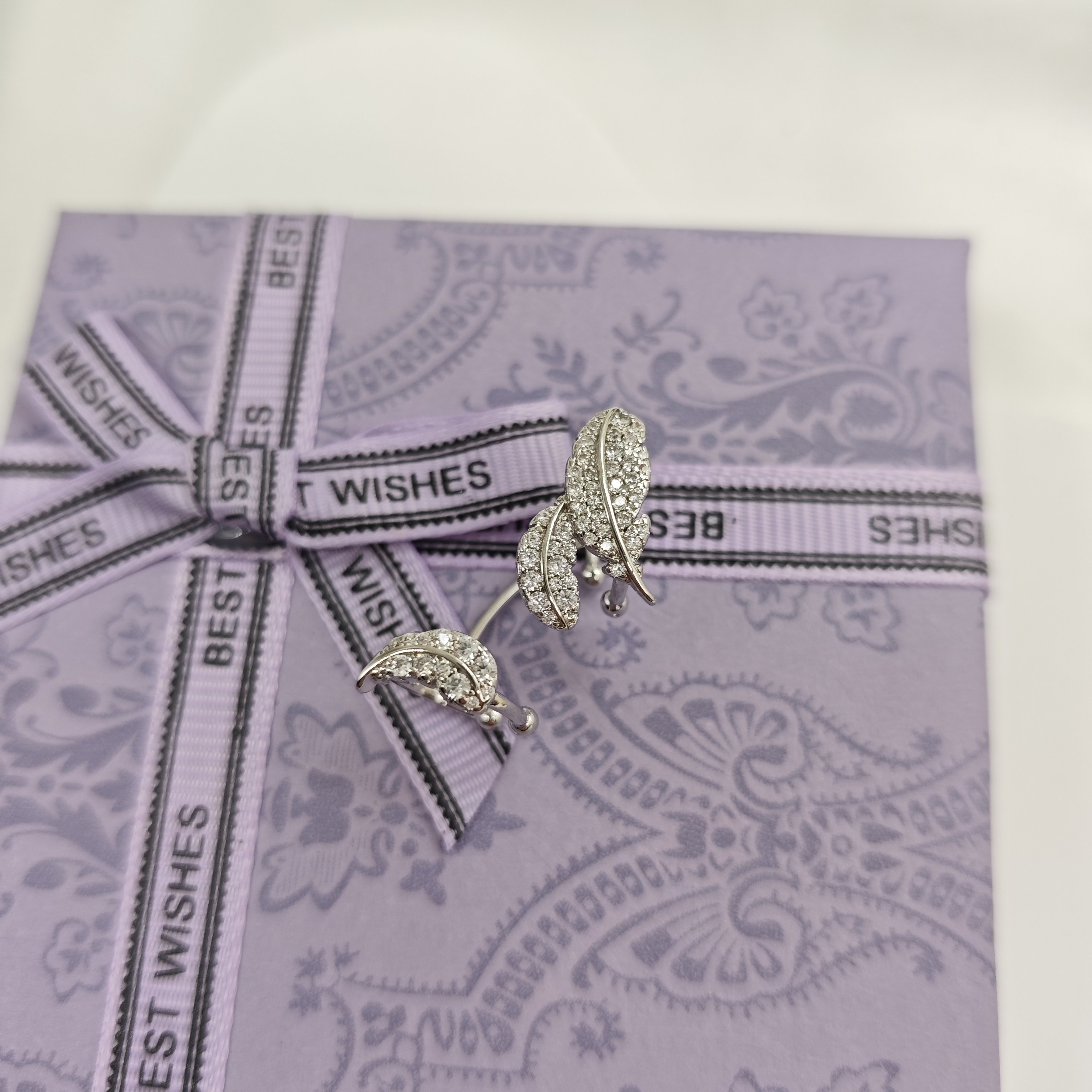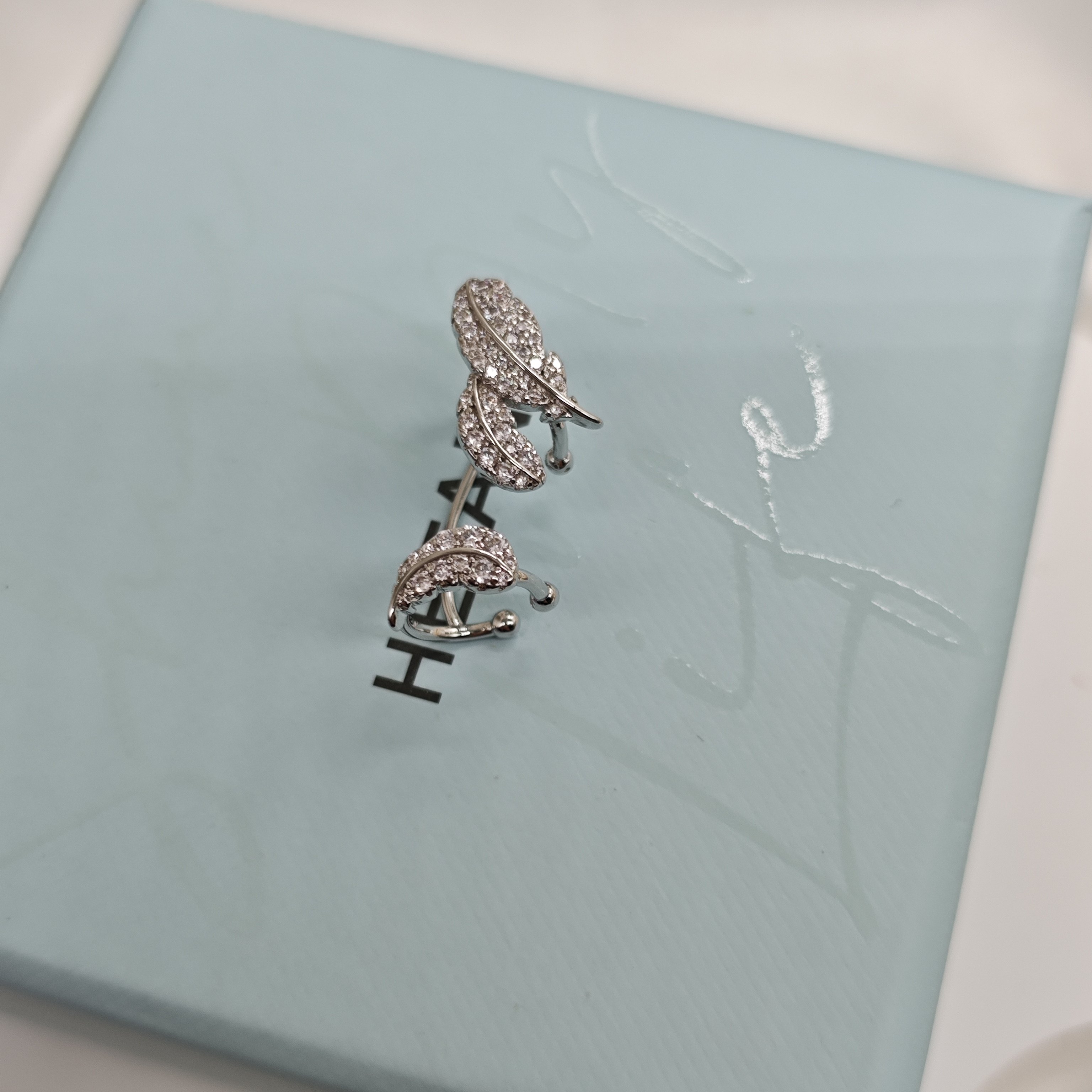 新品]何方HEFANG珠宝羽毛耳扣耳环无耳洞饰品轻奢耳饰优雅生日礼