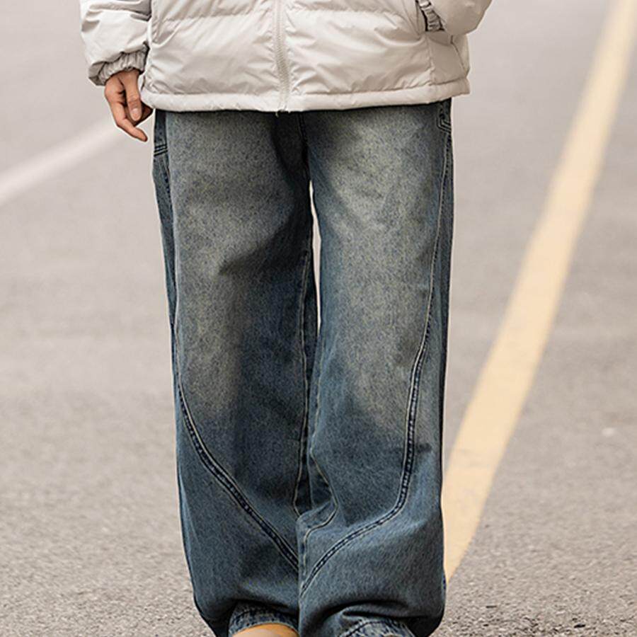 美式复古水洗高街拖地牛仔裤