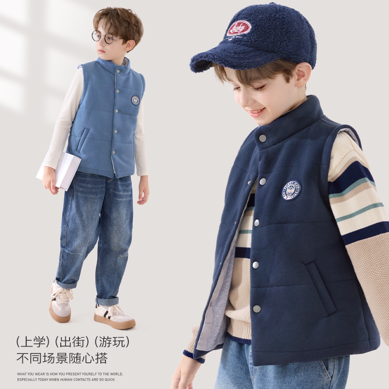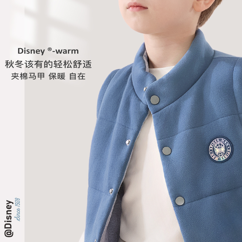 迪士尼儿童马甲纯棉秋冬男童背心坎肩外穿小男孩酷帅加厚夹棉保暖