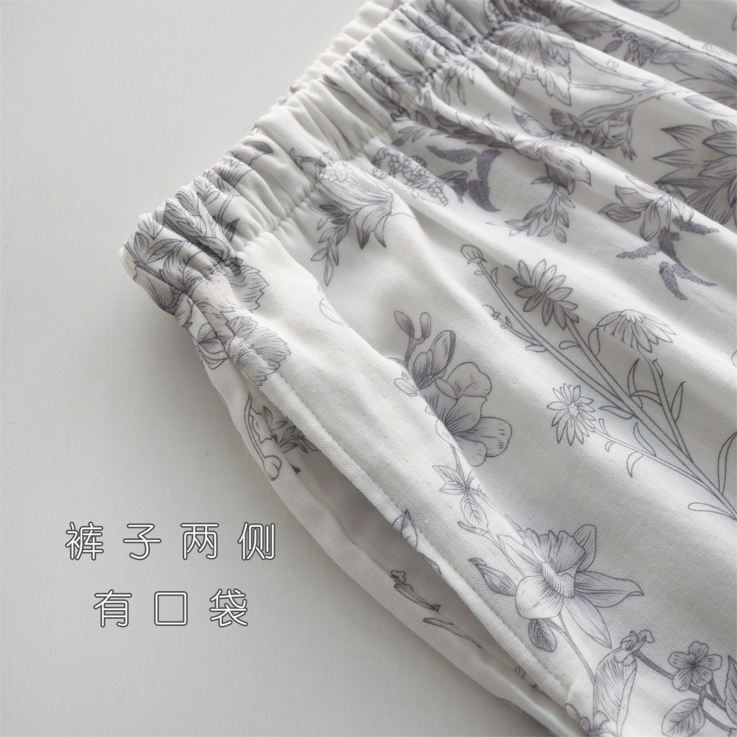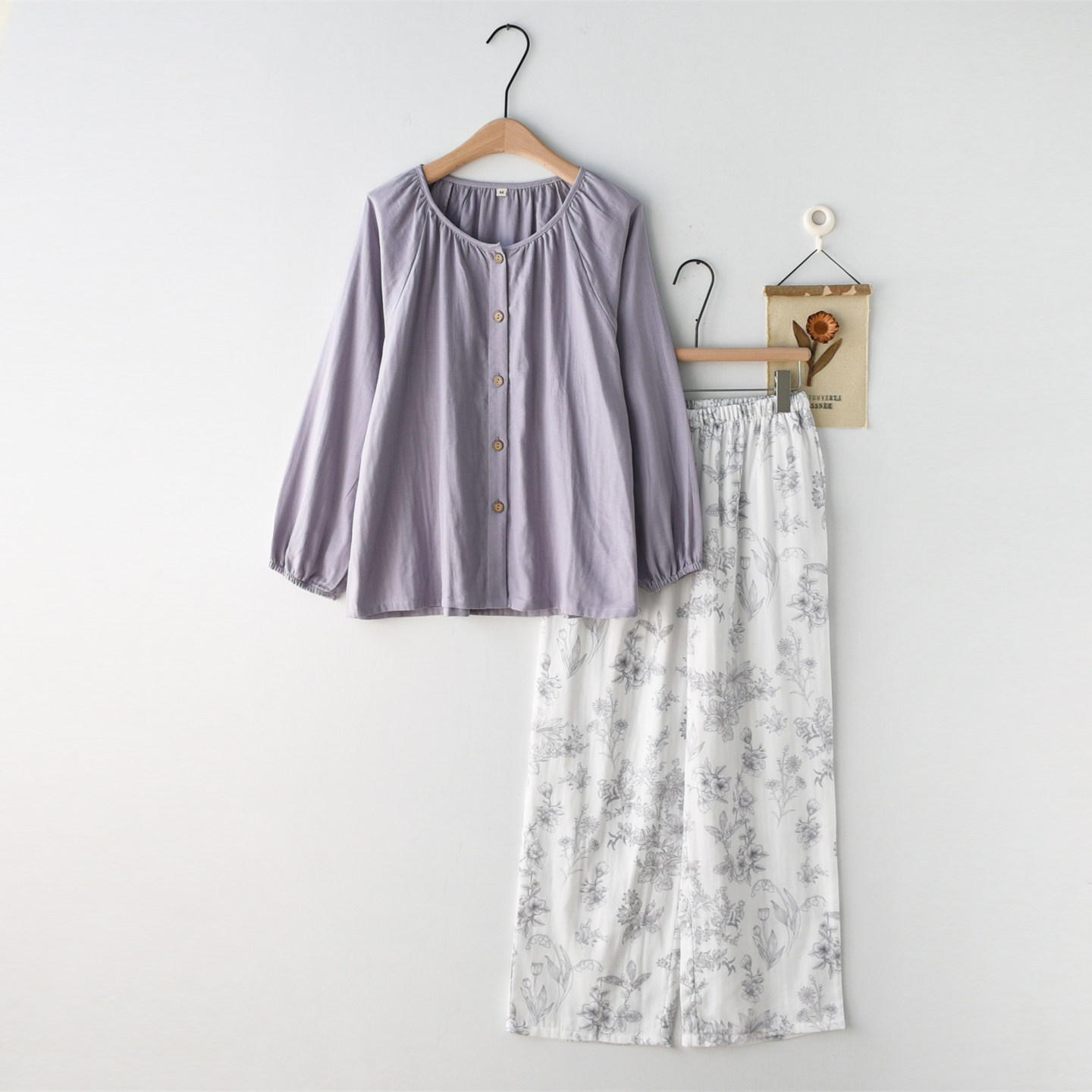 撞色新中式睡衣女士春夏季纯棉纱布双层薄款长袖长裤家居服套装