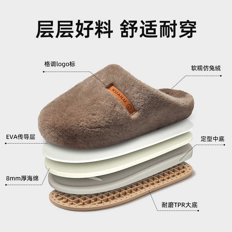 静音毛绒棉拖鞋女2025新款秋冬季居家用室内防滑保暖家居加绒男拖