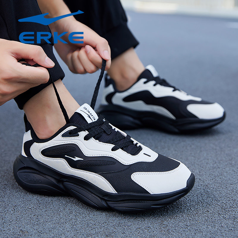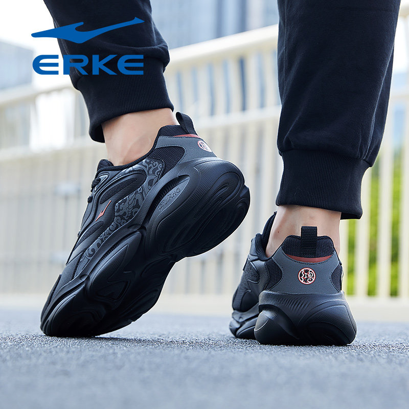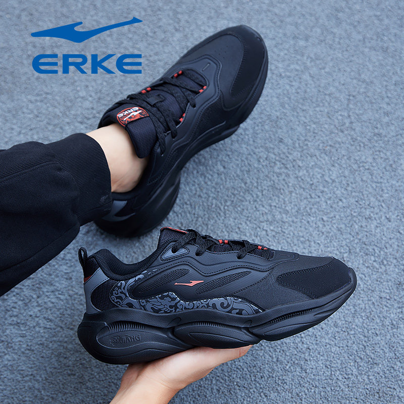 凤求凰3鸿星尔克男鞋2026冬季新款增高黑色防滑通勤休闲老爹鞋子