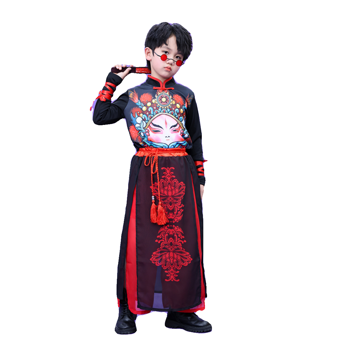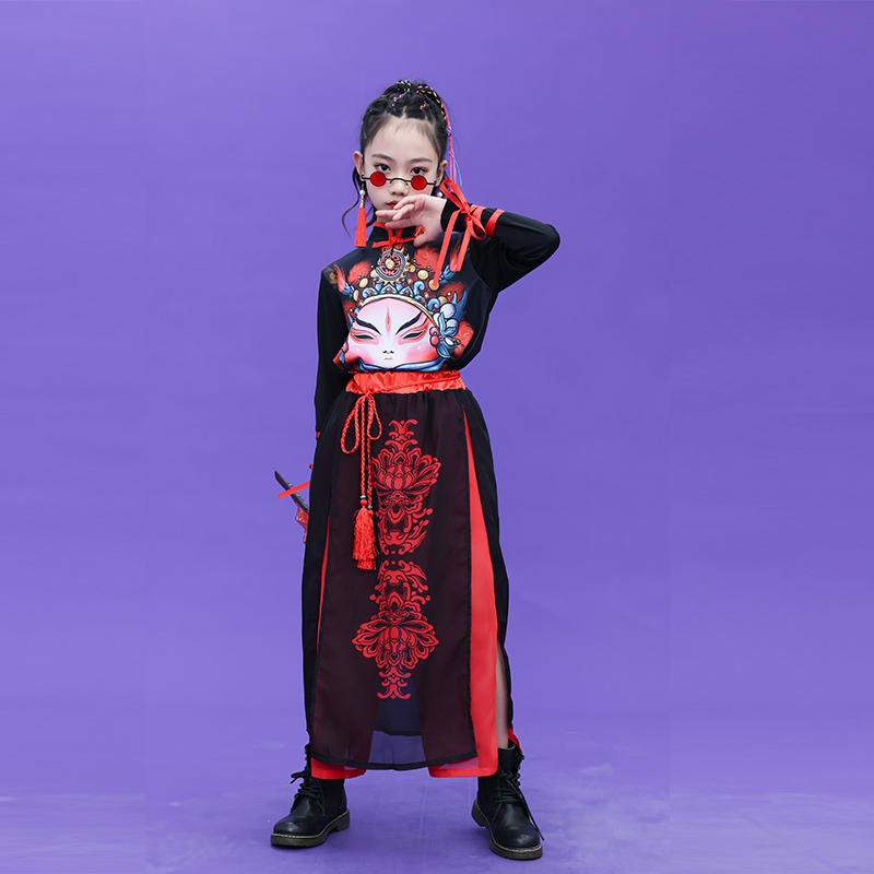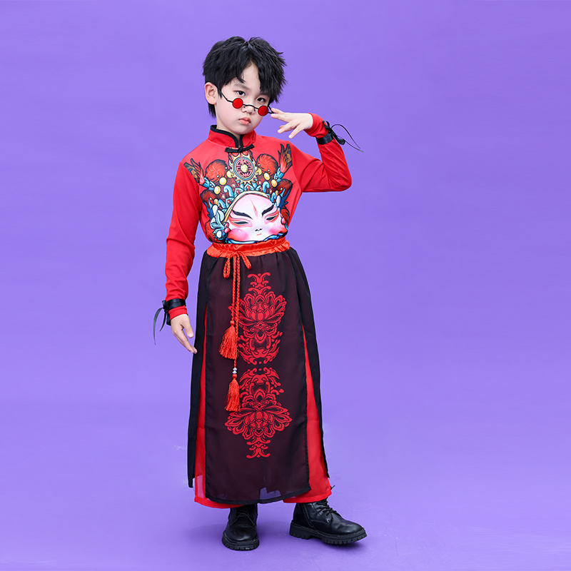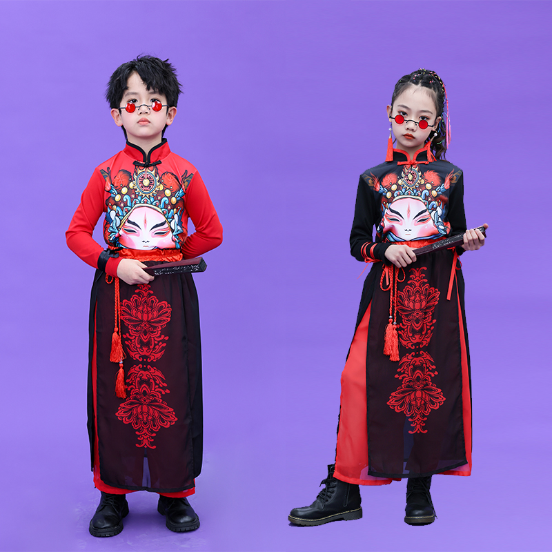 六一国潮风儿童演出服模特走秀爵士舞服幼儿园说唱脸谱合唱表演服
