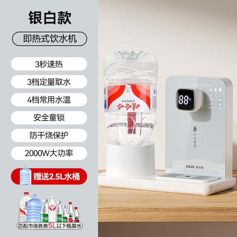奥克斯饮水机家用即热式台式mini热水器一体机矿泉水桶速热娃哈哈
