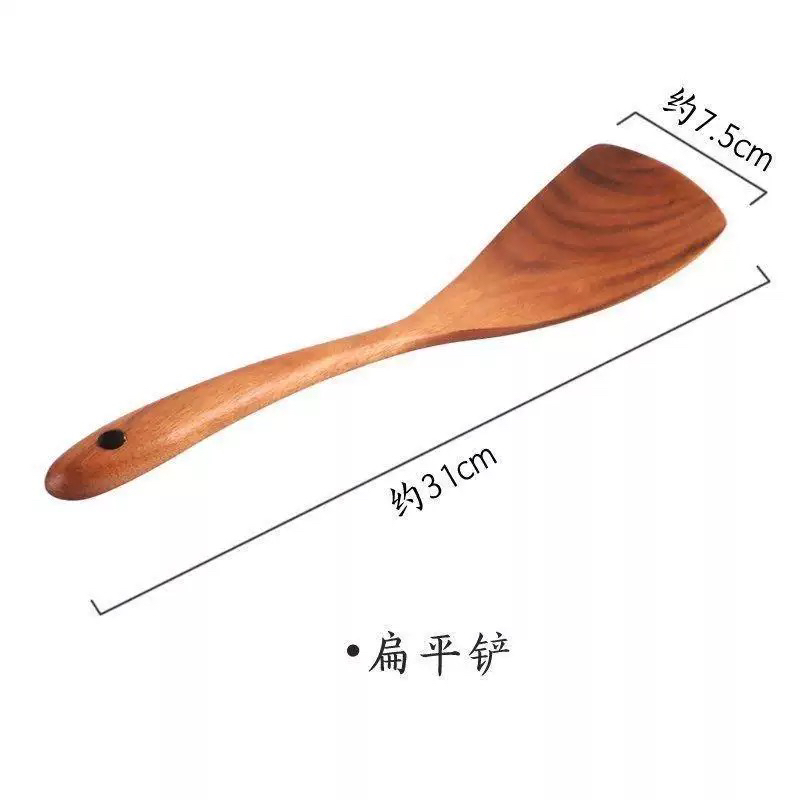 复古!柚木长柄木锅铲家用 厨房木铲实木不粘锅专用炒菜铲长把