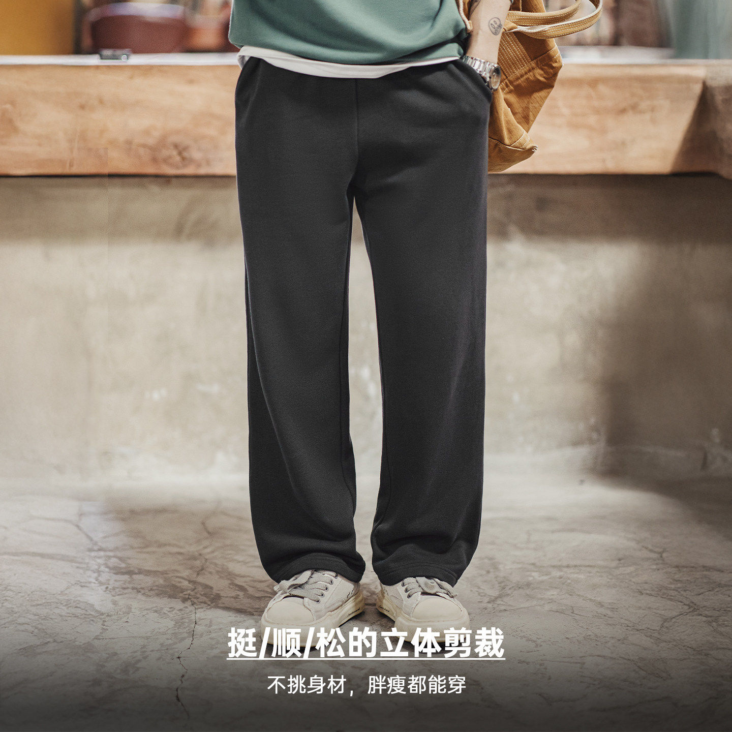 马登工装美式新疆纯棉卫裤直筒宽松灰色垂感运动休闲长裤子男士春