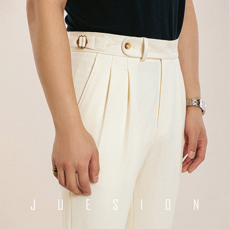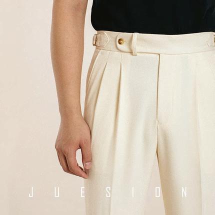 JUESION 春夏薄款那不勒斯西裤男商务绅士直筒垂感休闲西装长裤子