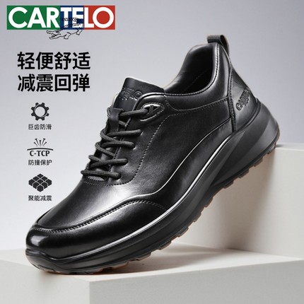 卡帝乐鳄鱼男鞋秋季透气真皮软底商务休闲皮鞋男运动鞋爸爸通勤鞋