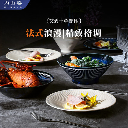 艾碧十草日本原装进口瓷器饭碗盘子餐具套装釉下彩轻奢礼盒10件套