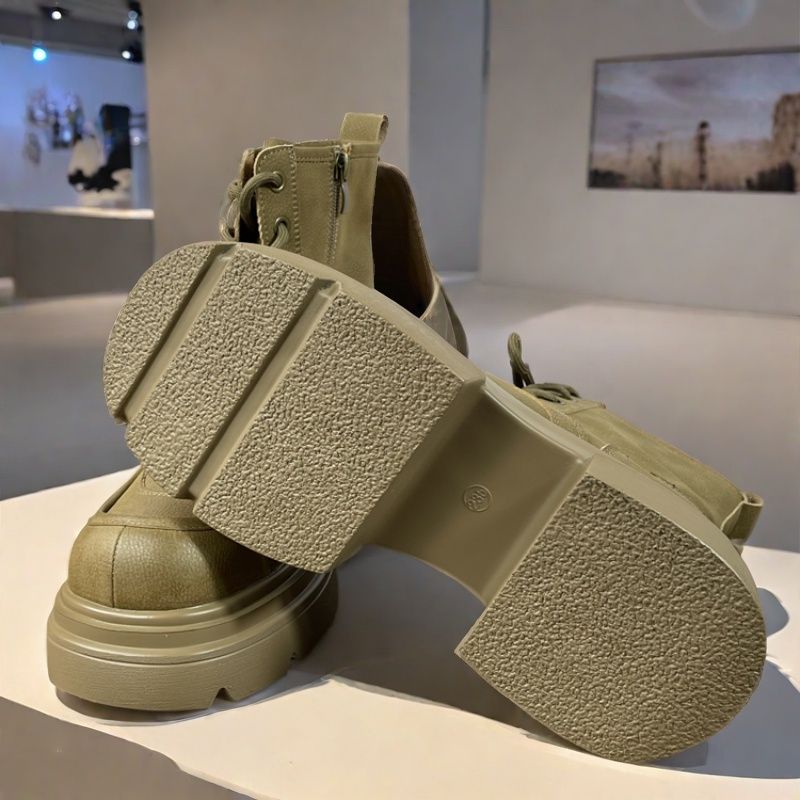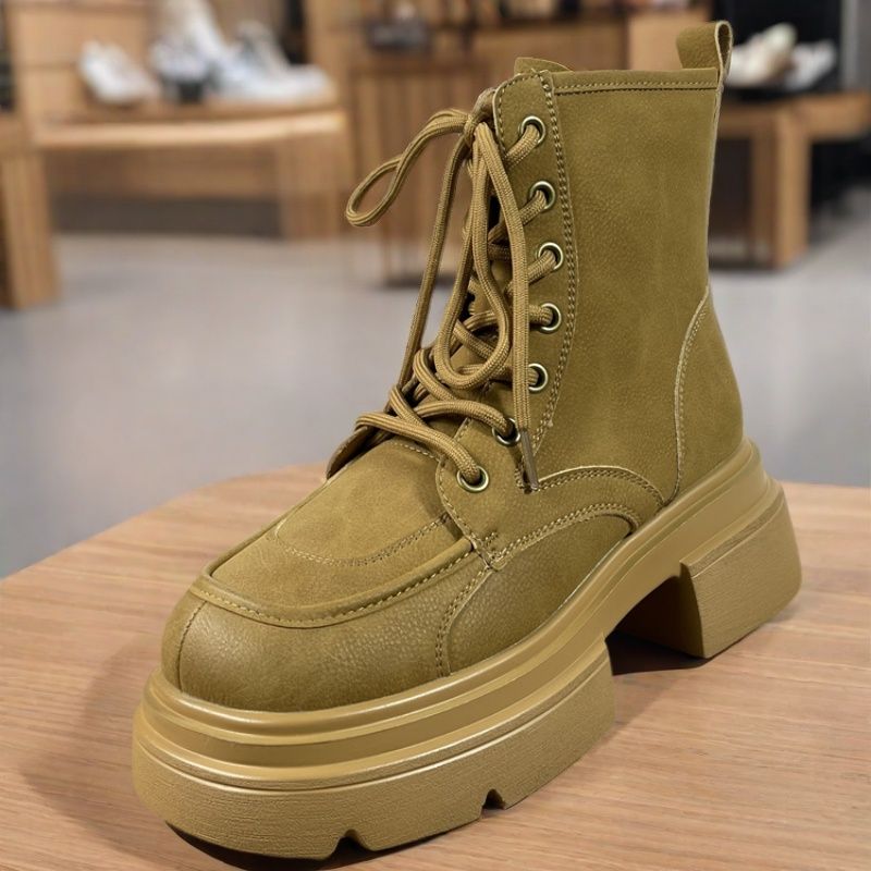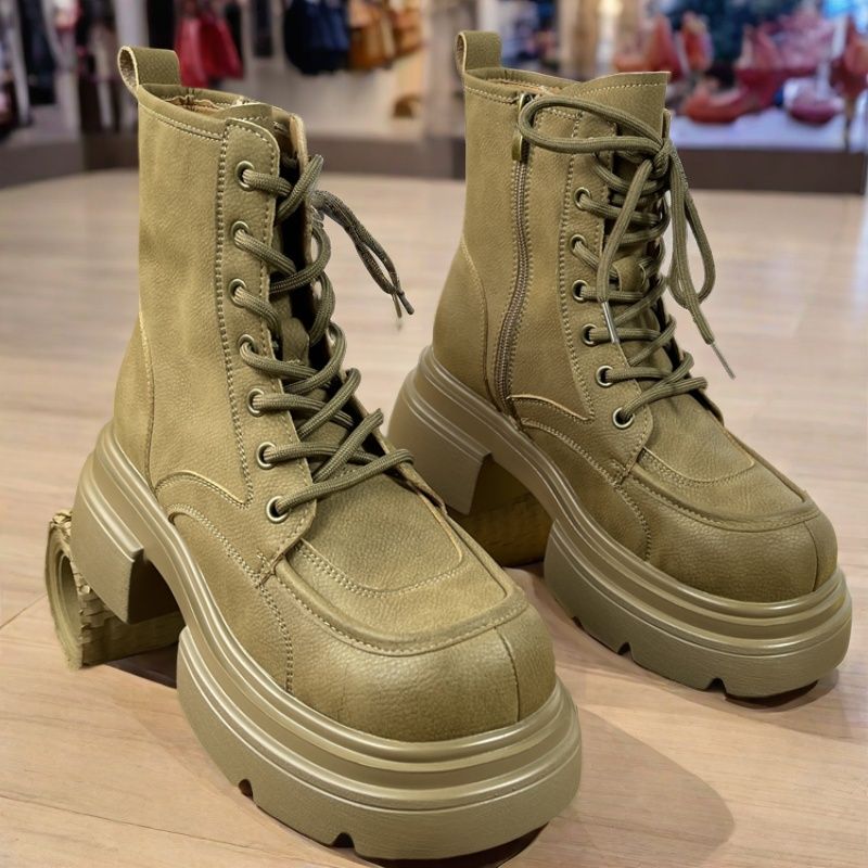 2024秋冬款单靴厚底粗跟真皮马丁靴女圆头系带短靴复古百搭休闲靴