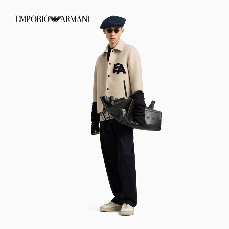 EMPORIO ARMANI/阿玛尼秋冬新款男士羊毛翻领棒球服教练夹克外套