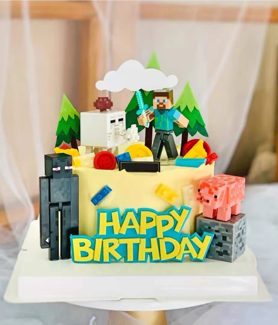 我的世界蛋糕装饰摆件minecraft生日布置配件主题甜品台积木插件