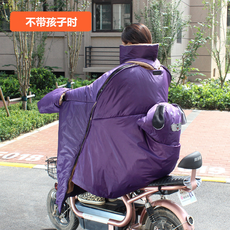 电瓶车挡风被接送孩子二宝加厚加绒三人双人电动摩托车防风衣冬季