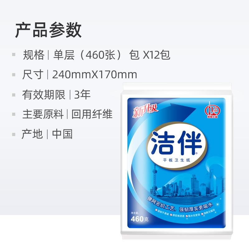 洁伴加韧平板卫生纸460g×36包
