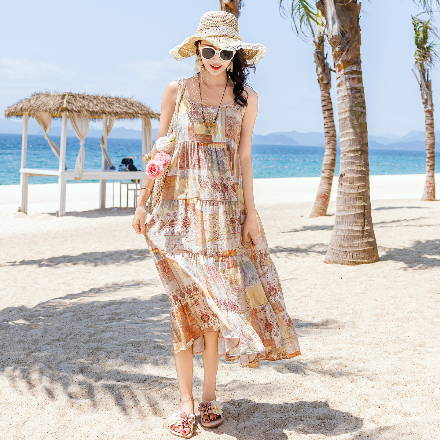 三亚海边沙滩度假亲子装2025新款夏季一家三口母子母女旅游连衣裙
