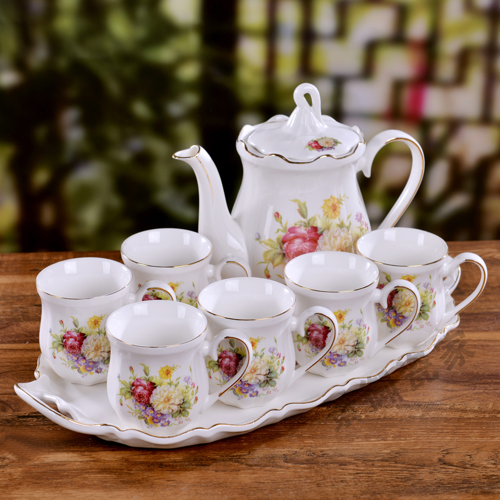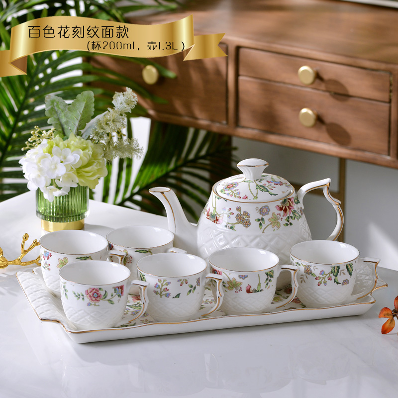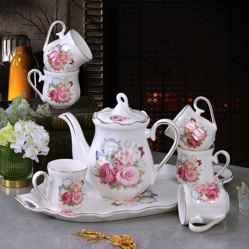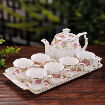 景德镇欧式礼盒装带托盘家用茶壶茶杯陶瓷整套茶具茶盘套装送人