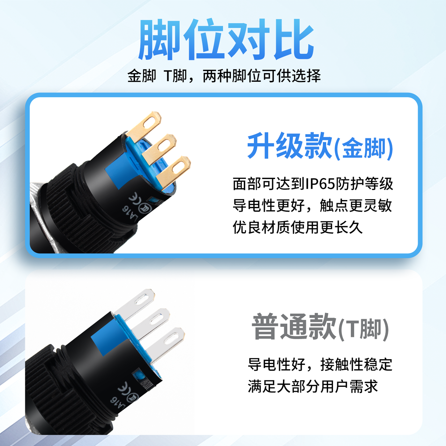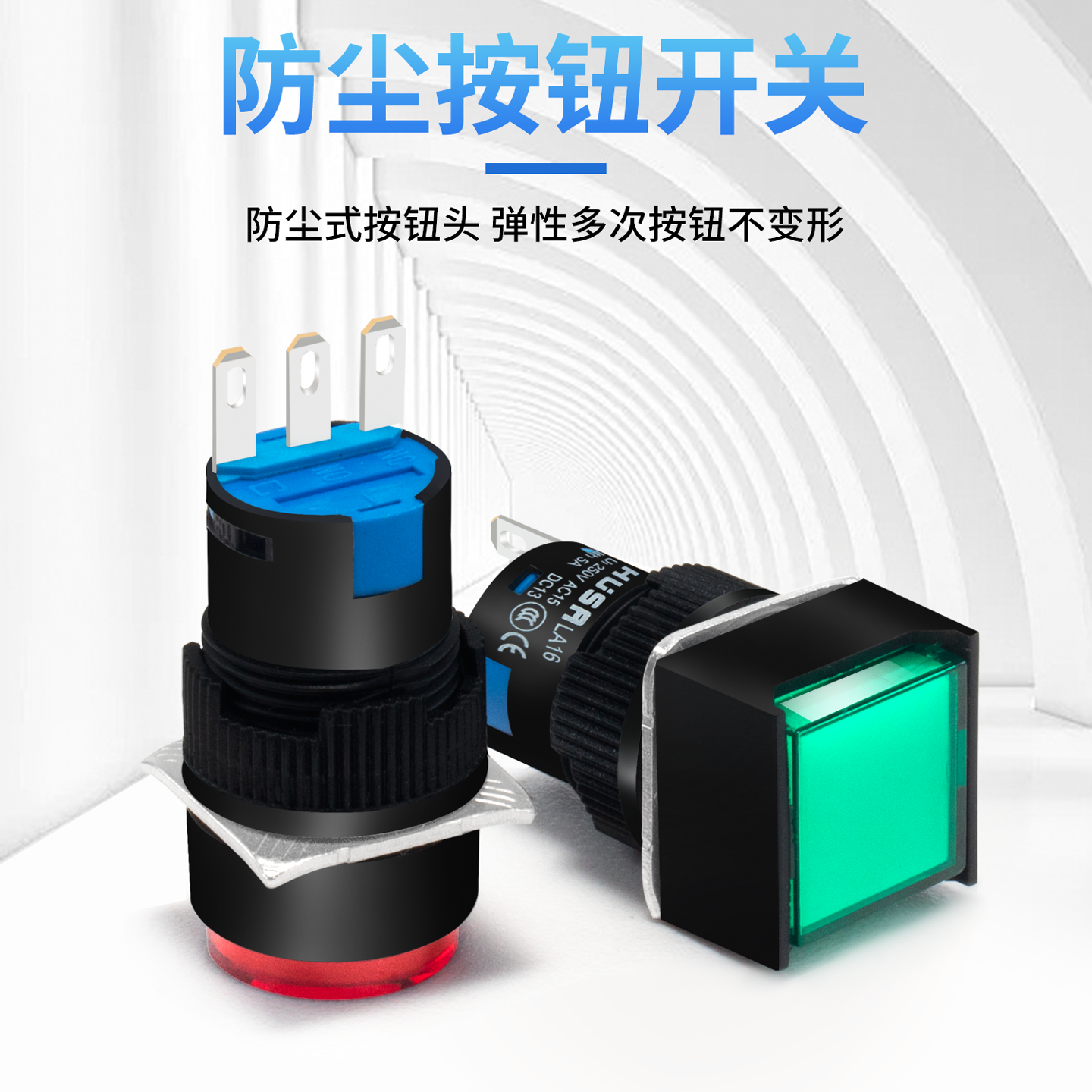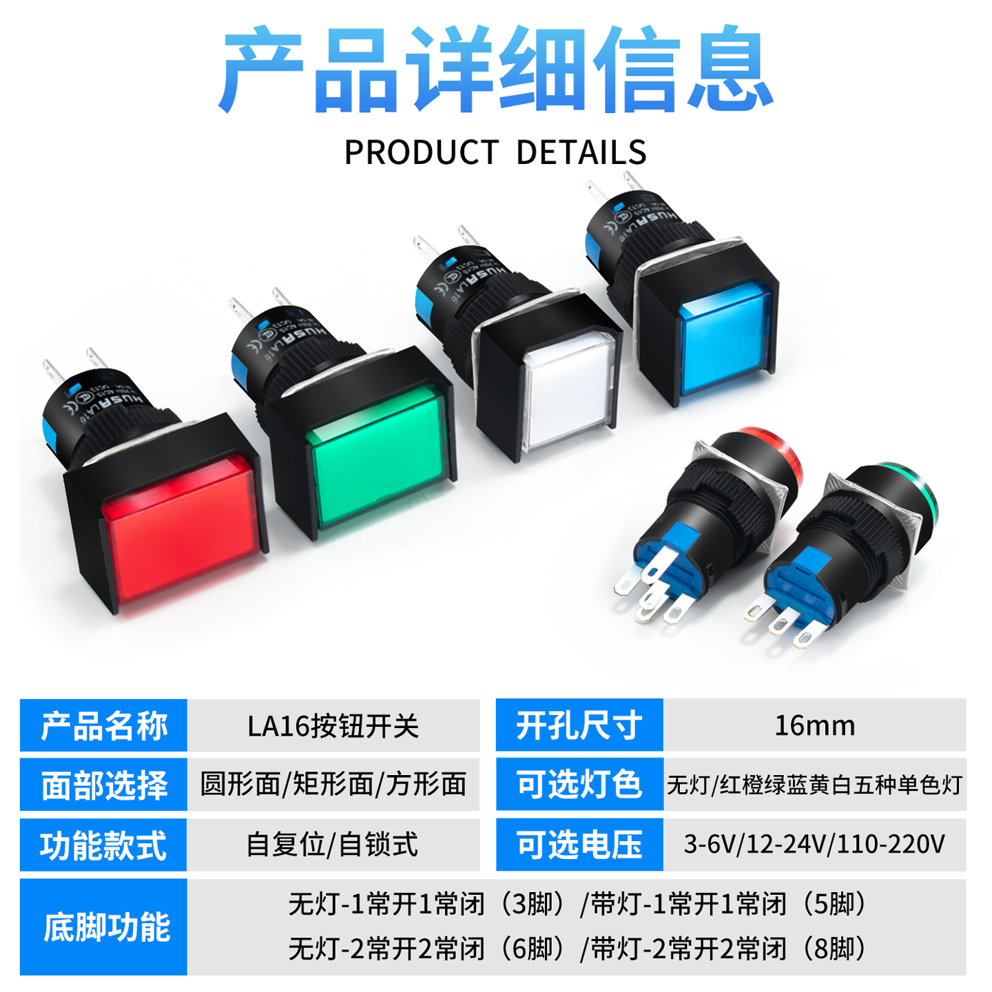 LA16带灯自复位自锁按钮开关点动启动电源圆形正方形矩形16mm按键
