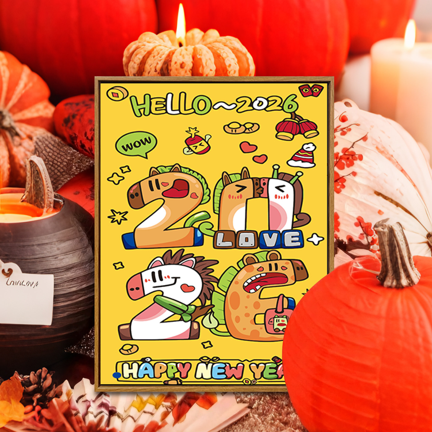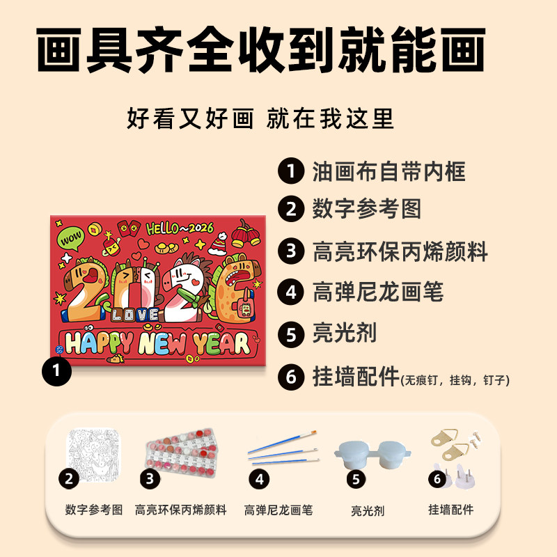2026马年卡通数字油画diy填充填色手工绘喜庆治愈系丙烯装饰挂画