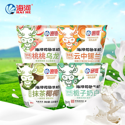 天津海河牛奶桃桃乌龙粉黛芭乐栀子奶白抹茶椰椰调制乳220ml新品