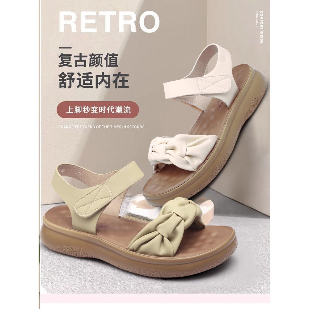 品牌鞋真皮软底中年妈妈凉鞋女夏2025年新款平底舒适防滑孕妇凉鞋