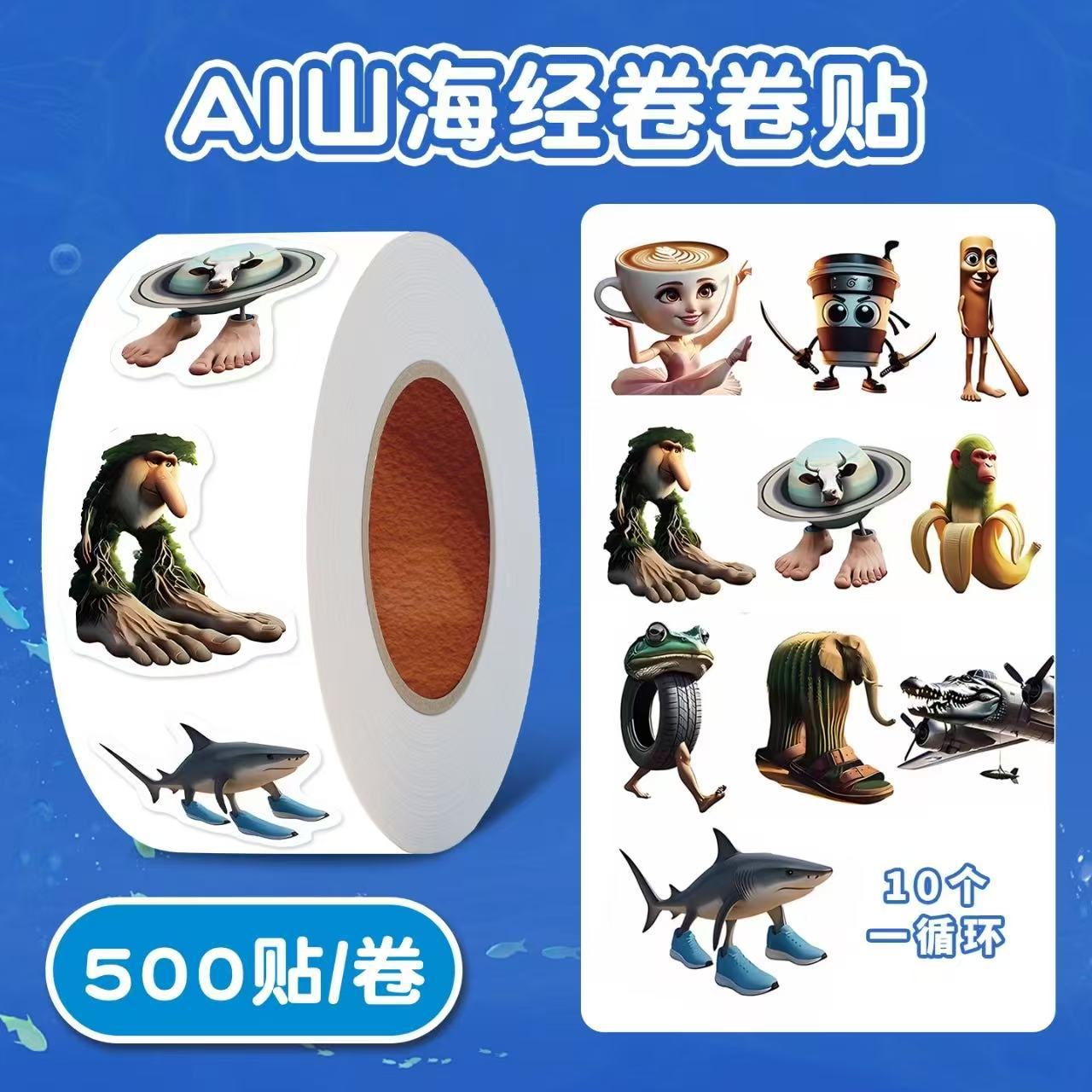 表情包山海经卷卷贴卡通趣味外国山海经贴纸搞笑沙雕抽象手账贴画