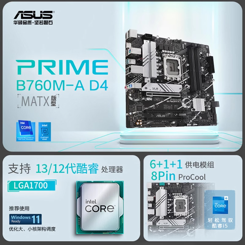 全新华硕PRIME B760M-K/B760M-A/B760-PLUS台式机电脑主板matx