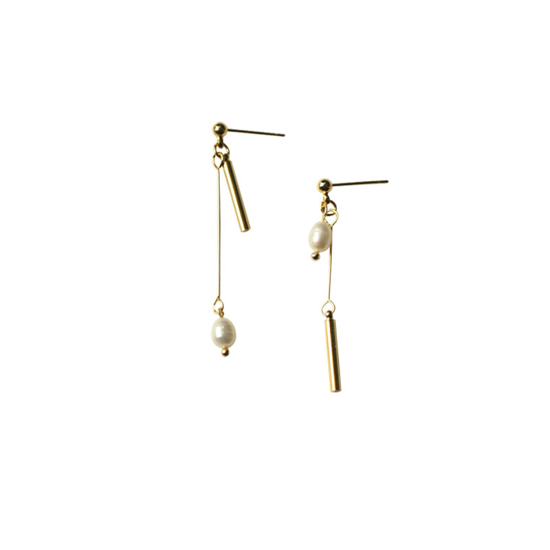 花宿原创 定格 天然珍珠不对称14k包金耳环耳夹女 气质时尚高质感