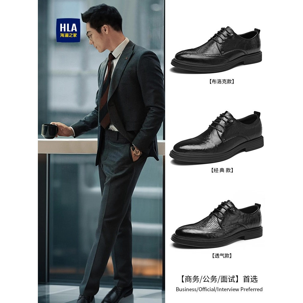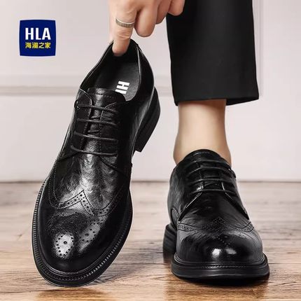 HLA/海澜之家【商业/公务/面试】男鞋正装布洛克鞋增高皮鞋德比鞋