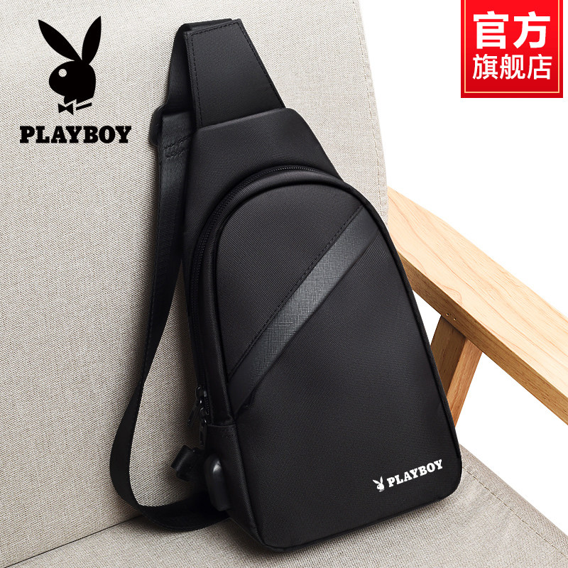 花花公子男士斜挎包男款帆布包包