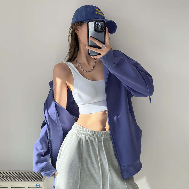 TEETKE美式复古慵懒ins连帽卫衣开衫女oversize宽松高级感外套秋