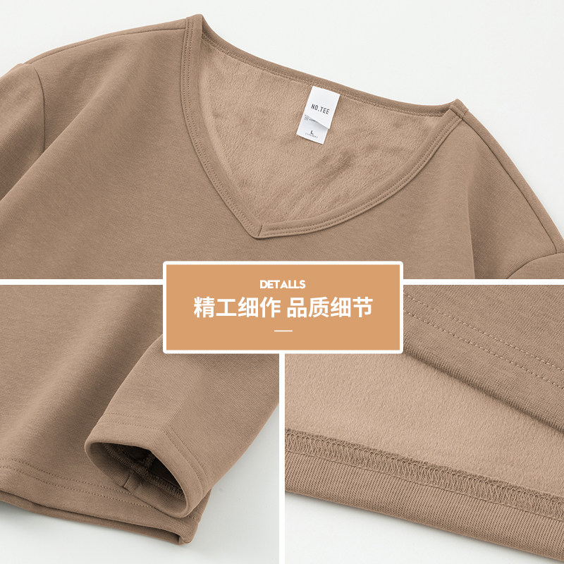 男士长袖t恤保暖V领上衣服秋冬季加绒加厚潮流内搭打底衫秋衣小衫