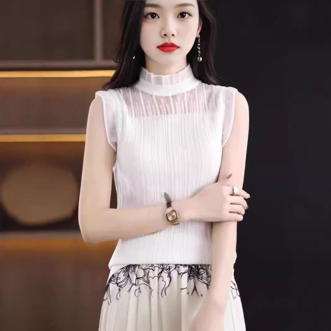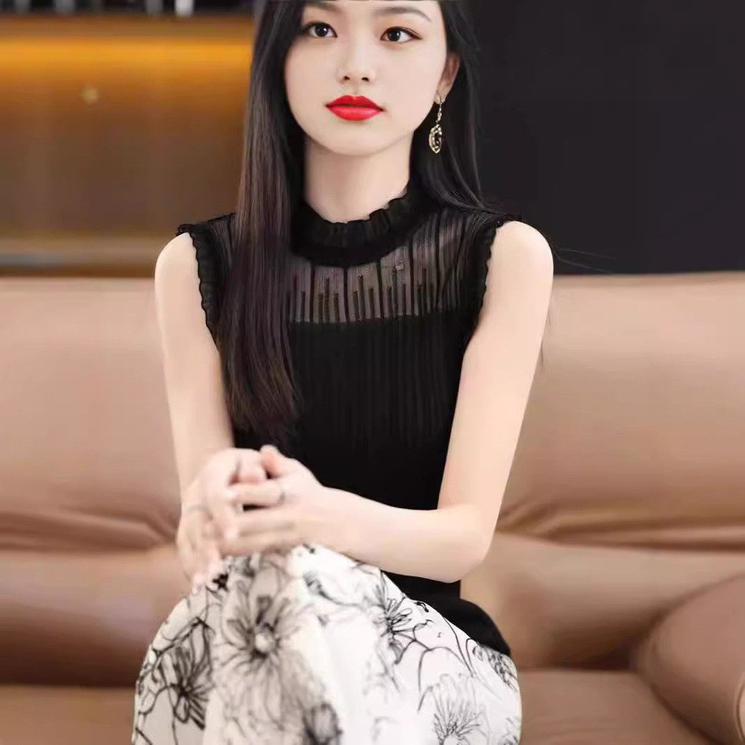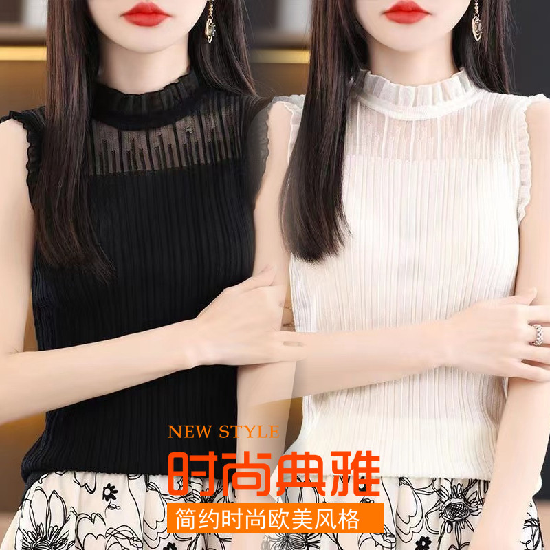 【买一送一】新款百搭针织背心洋气蕾丝花边高弹性无袖打底衫女