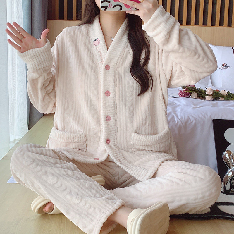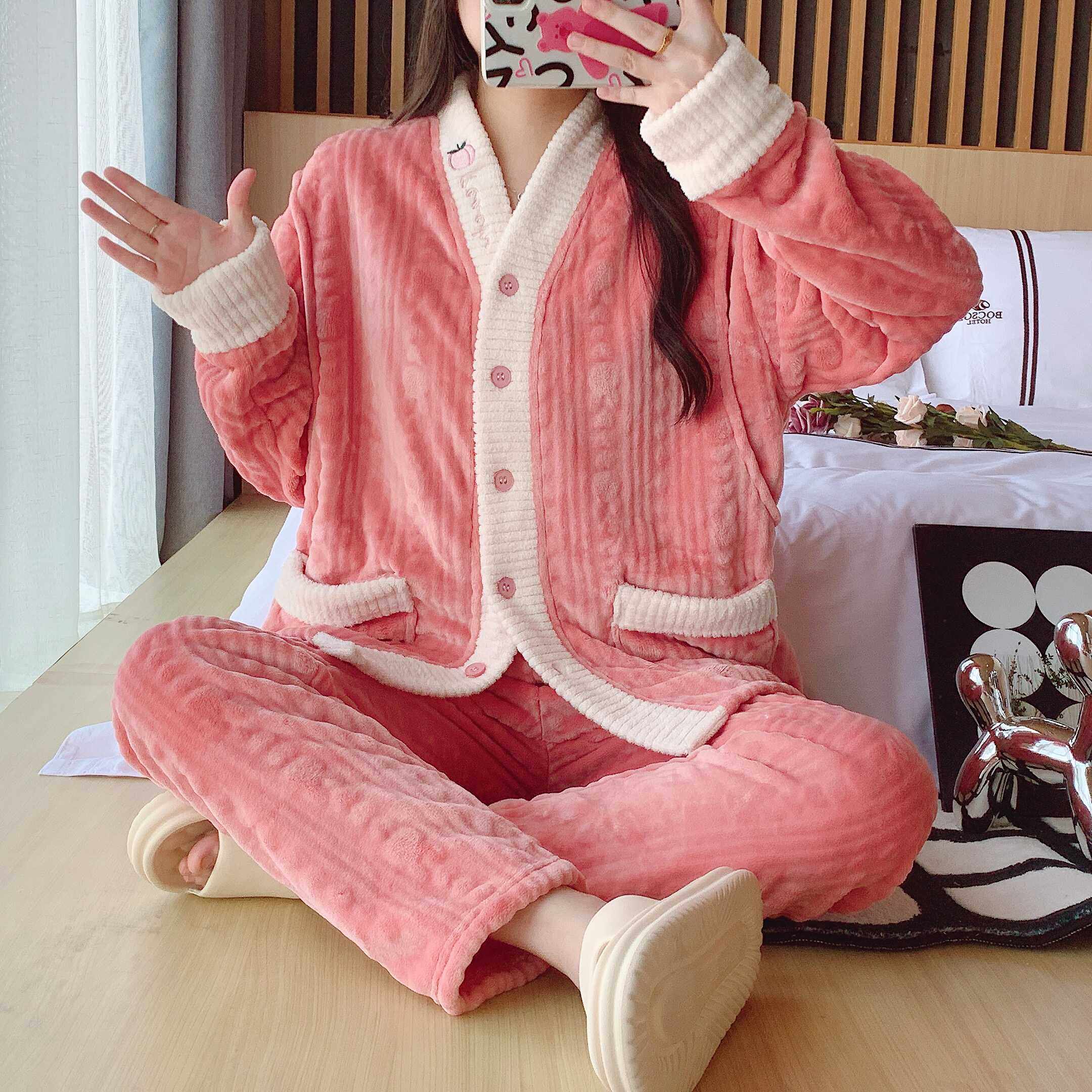 2025年新款长袖保暖珊瑚绒睡衣
