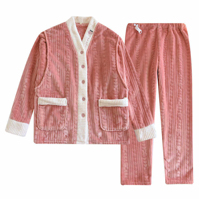孕妇睡衣女秋冬法兰绒月子服11月份产后喂奶哺乳款保暖家居服套装