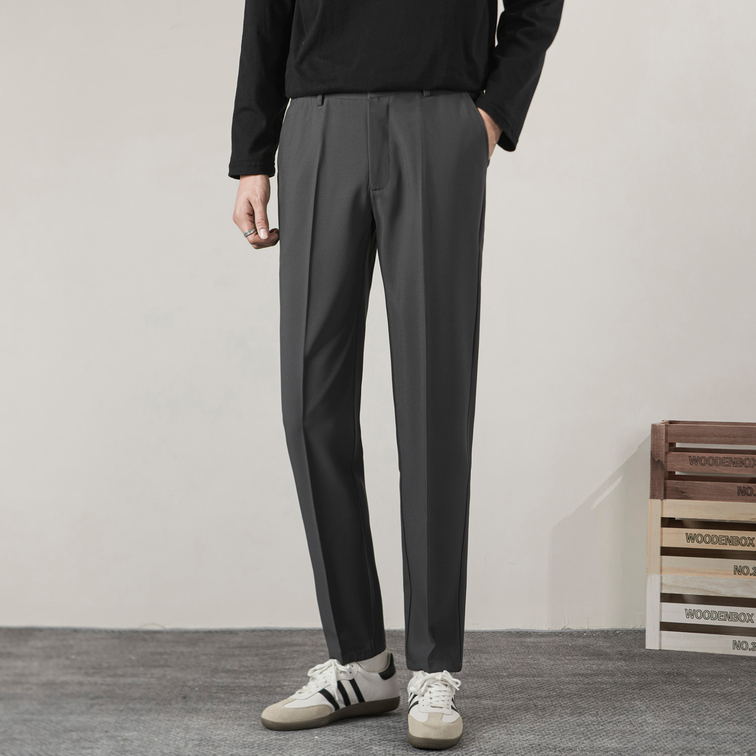 冰丝西装裤子男秋冬款九分弹力微锥胖子大码西裤垂坠感高级感男