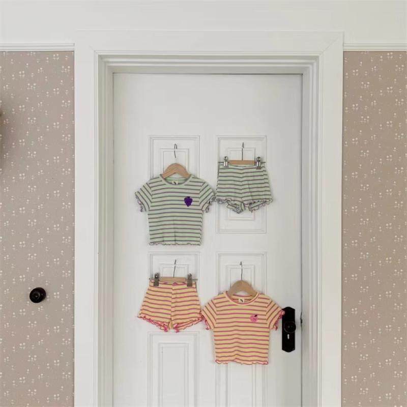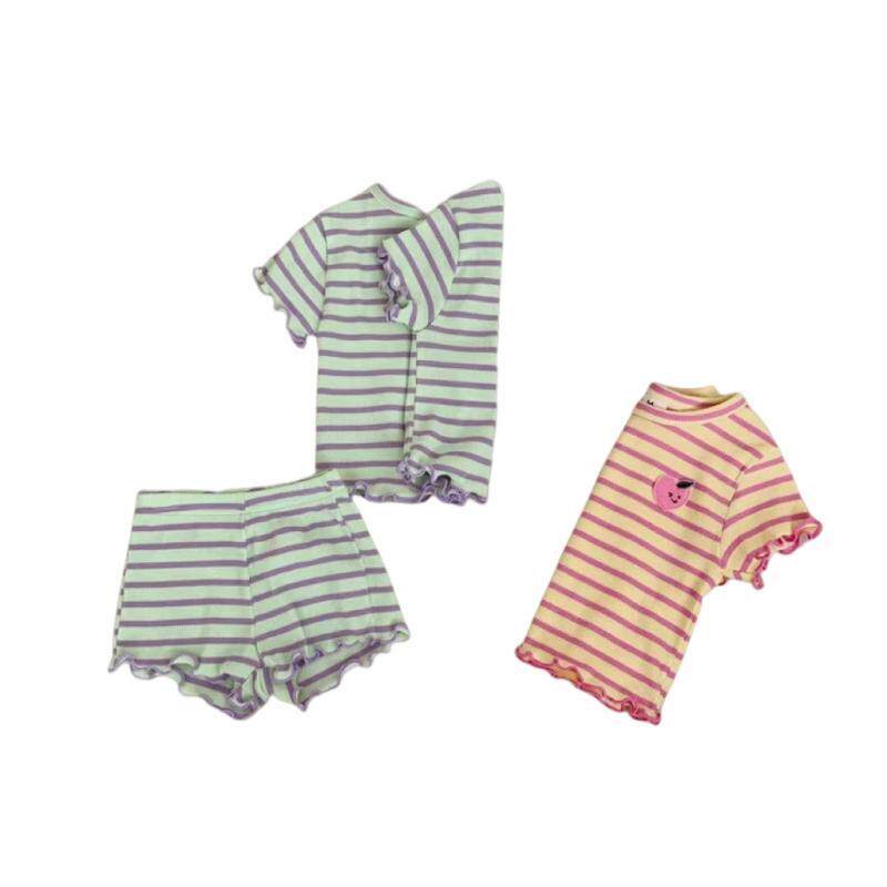 夏季婴儿韩版短袖木耳边条纹T恤短裤两件套女宝宝可爱薄款套装潮