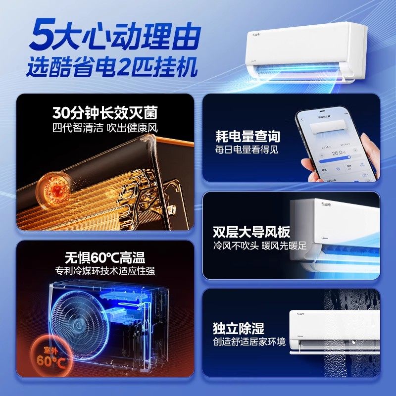 美的空调2匹一级变频挂机大卧室冷暖壁挂式酷省电官方旗舰店正品G