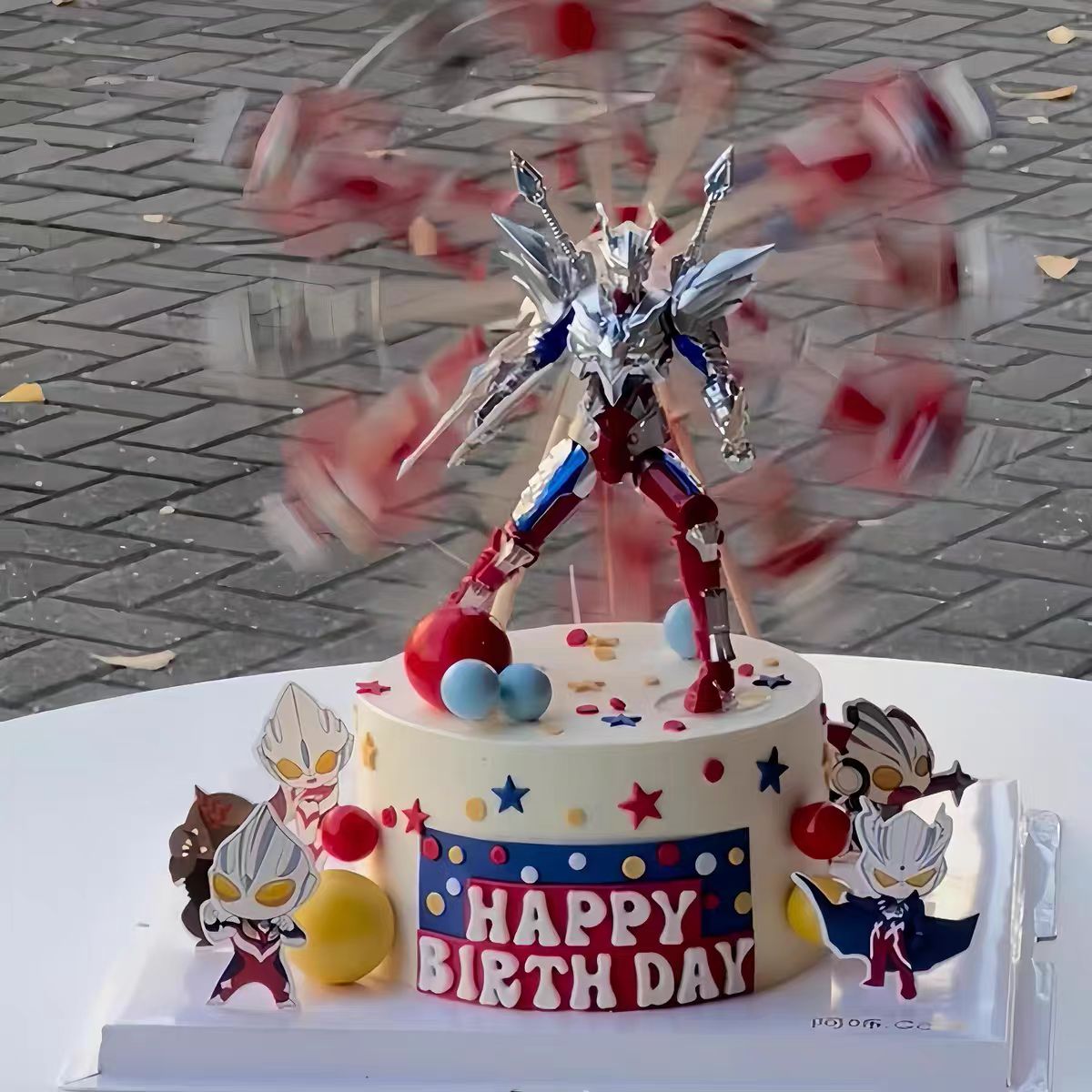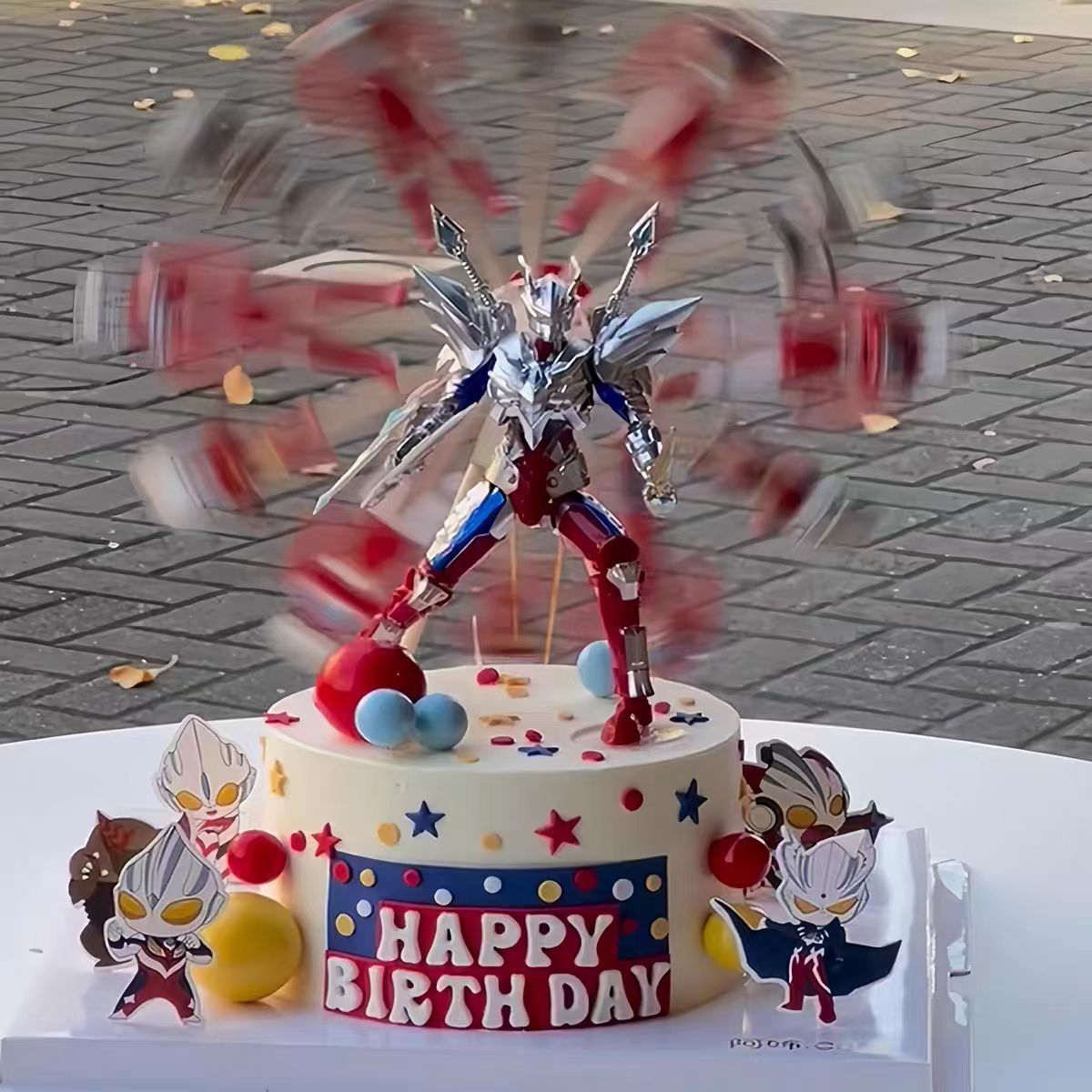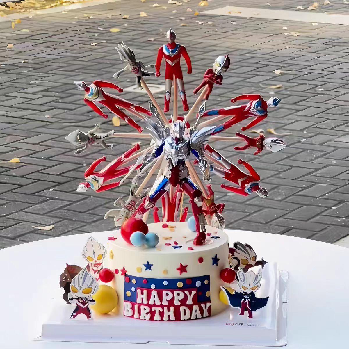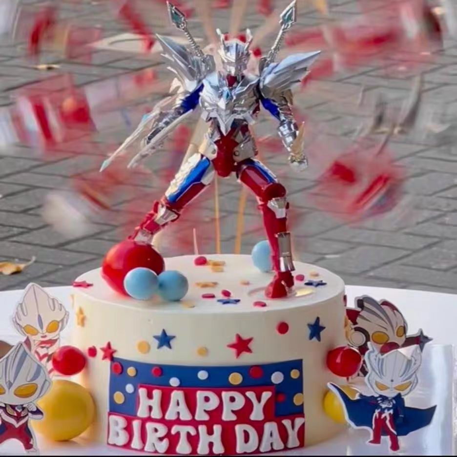 超人打怪兽旋转摩天轮奥特曼蛋糕装饰生日男孩摆件配件儿童套装