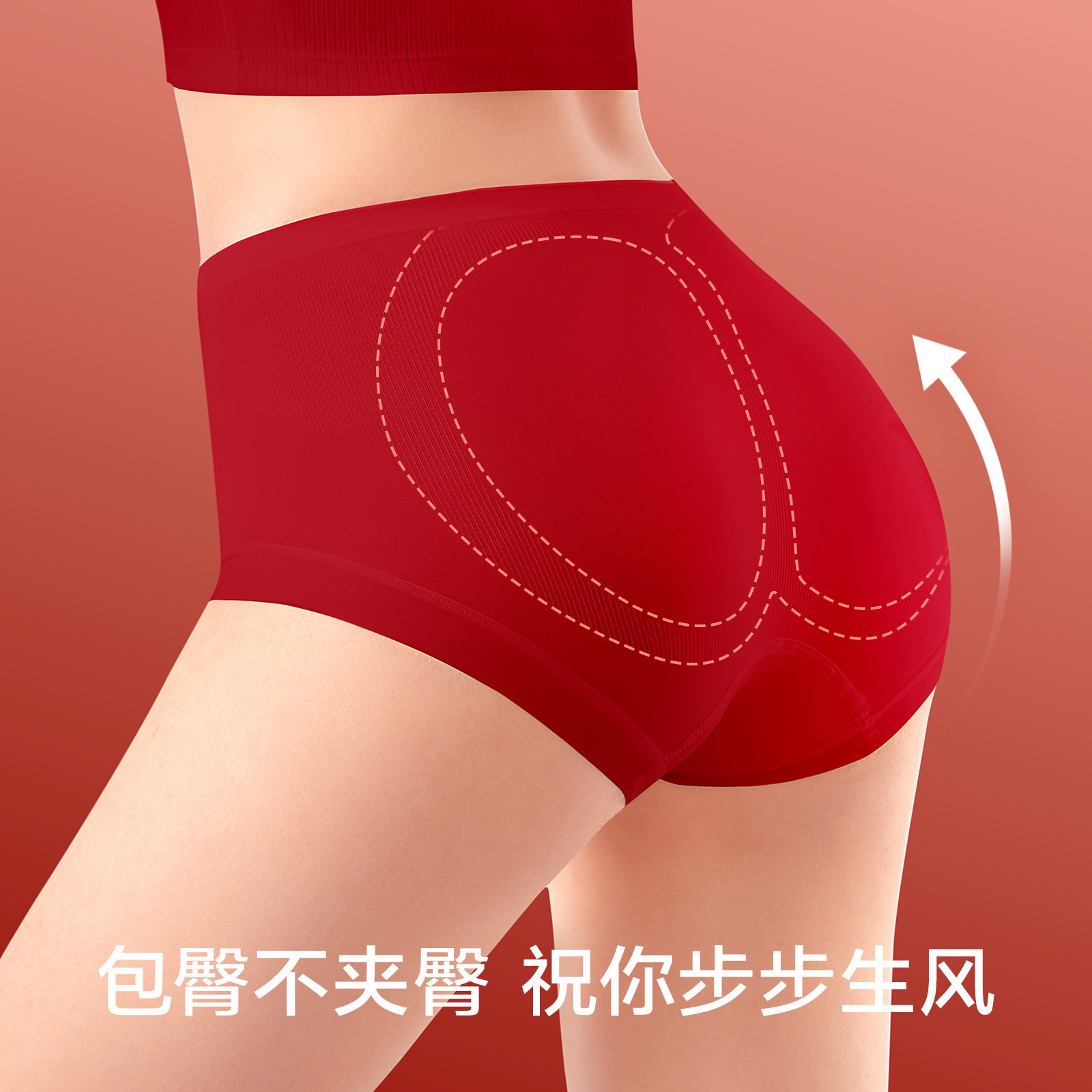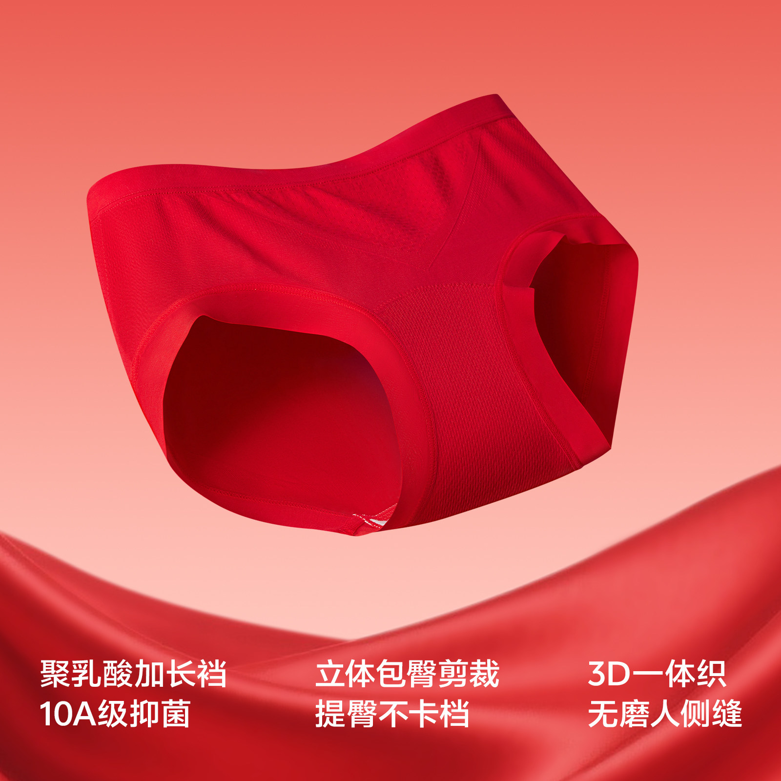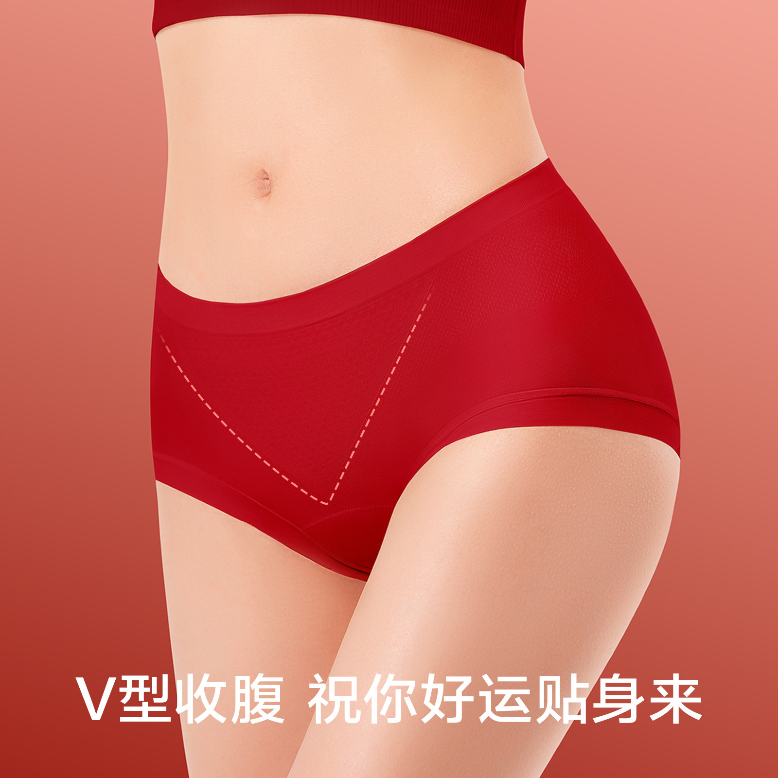 草本初色内裤女本命年红色纯棉抑菌裆无痕新款马年结婚礼盒三角裤