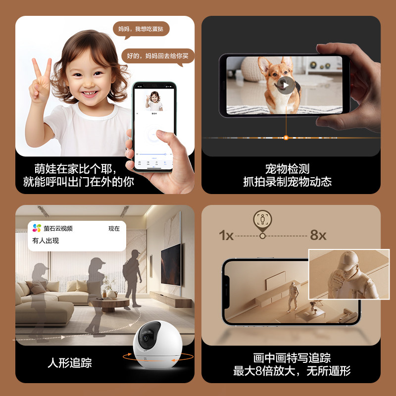 萤石监控摄像头摄影家用无线高清室内家庭门口婴儿莹云宠物看护器