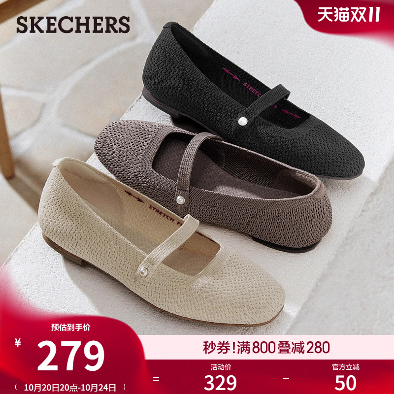 斯凯奇浅口单鞋2025新款夏女鞋软底玛丽珍鞋网面透气平底鞋休闲鞋